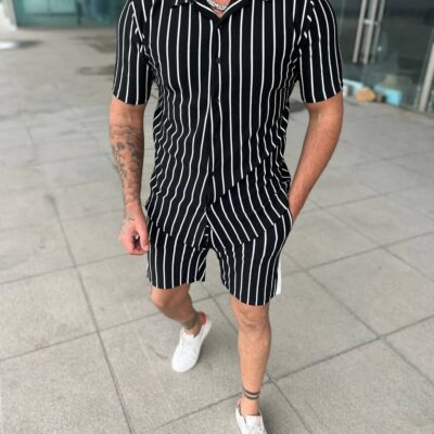 Мужской Черный Комплект Двойка с Накладными Карманами – Жилет на Молнии + Штаны Джоггеры