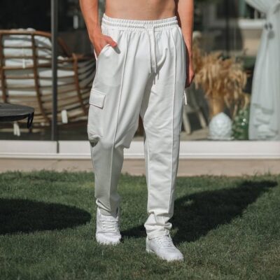 Мужской Теплый Белый Спортивный Костюм Полар Флис (Худи + Джоггеры)