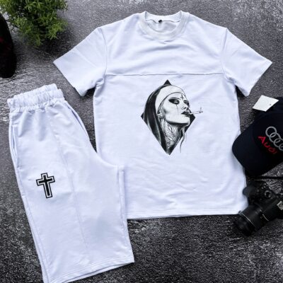 Мужской Белый Костюм со Швами Наружу – Свитшот Оверсайз + Джоггеры