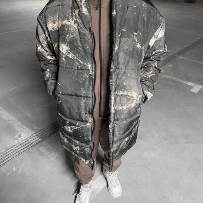 Мужская Зимняя Куртка Серого Цвета – Дутая с Капюшоном и Высоким Воротом