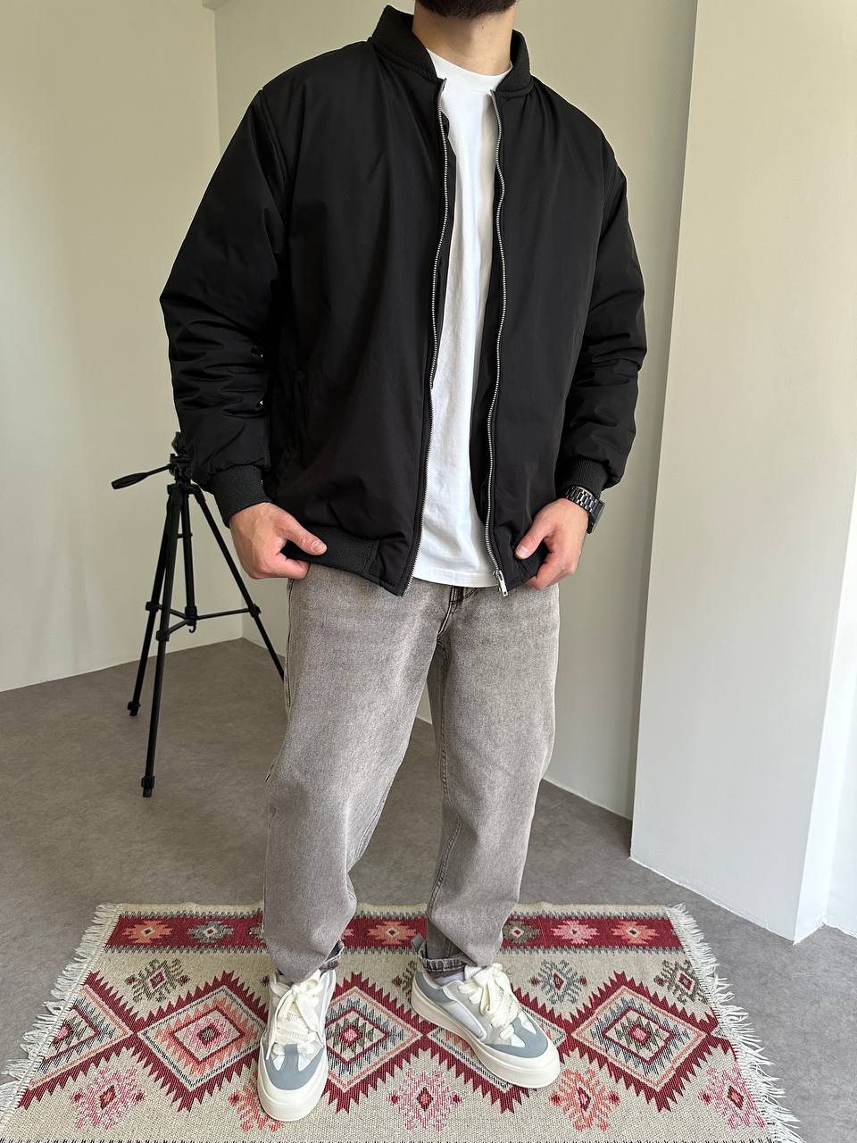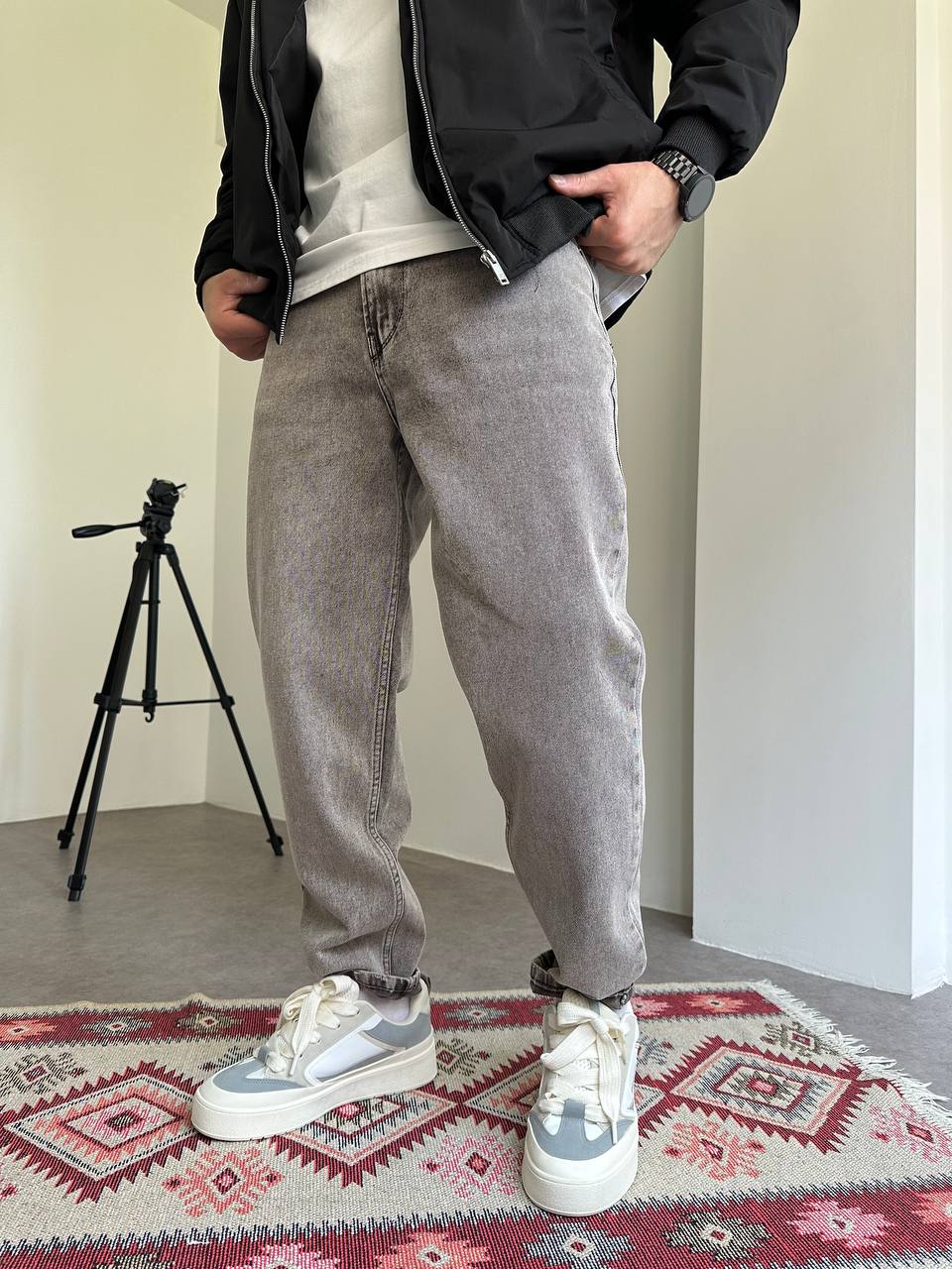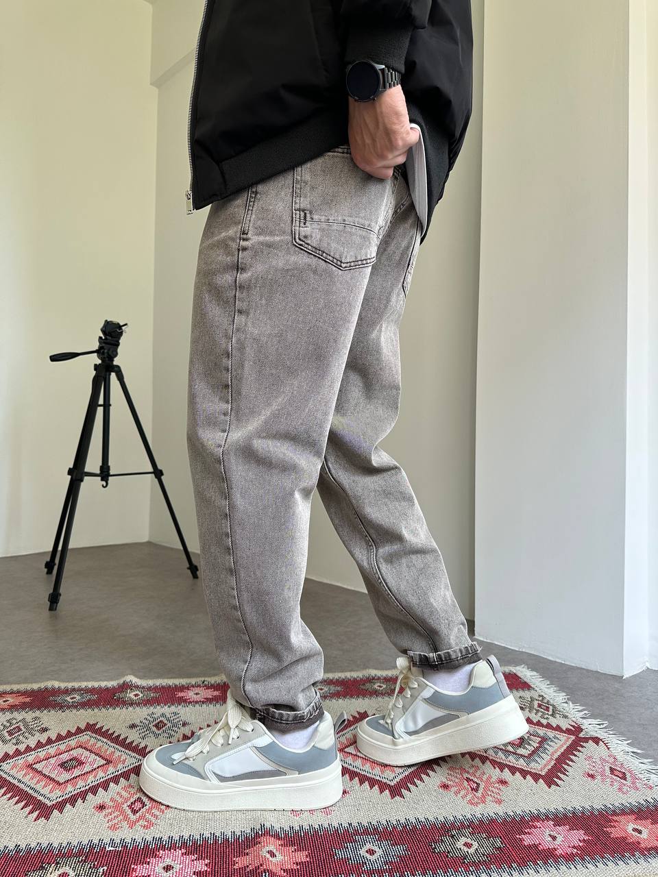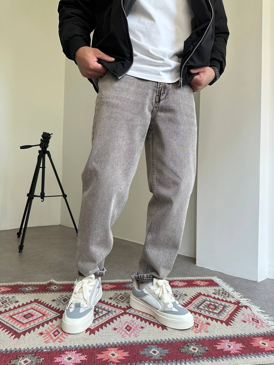 Мужские Широкие Серые Джинсы Мом с Плотного Денима