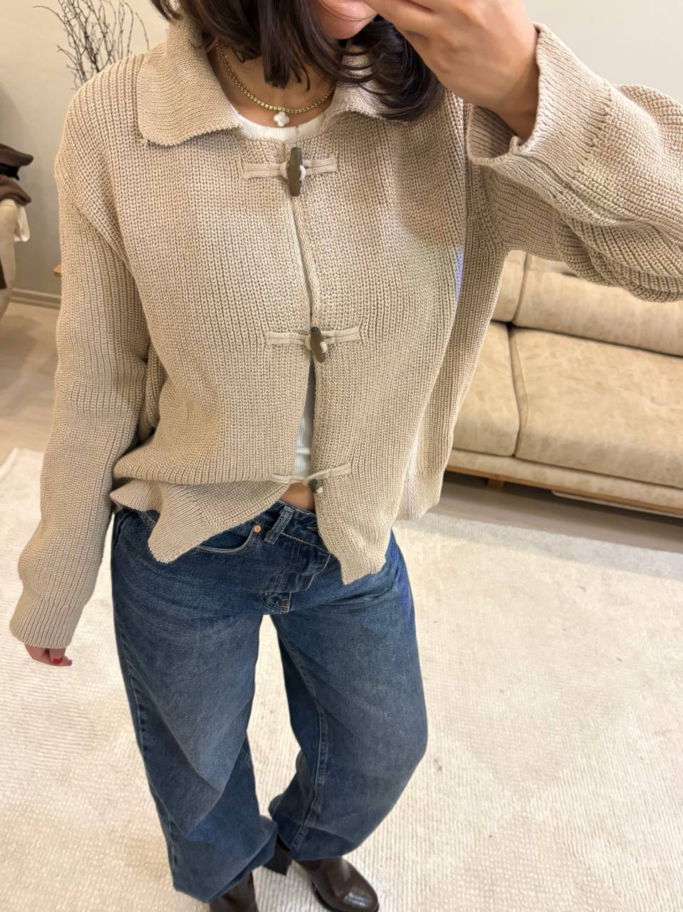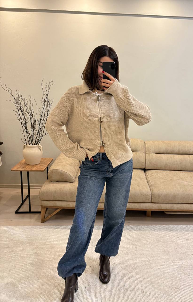 Женский Базовый Свободный Бежевый Кардиган на Акцентных Завязках