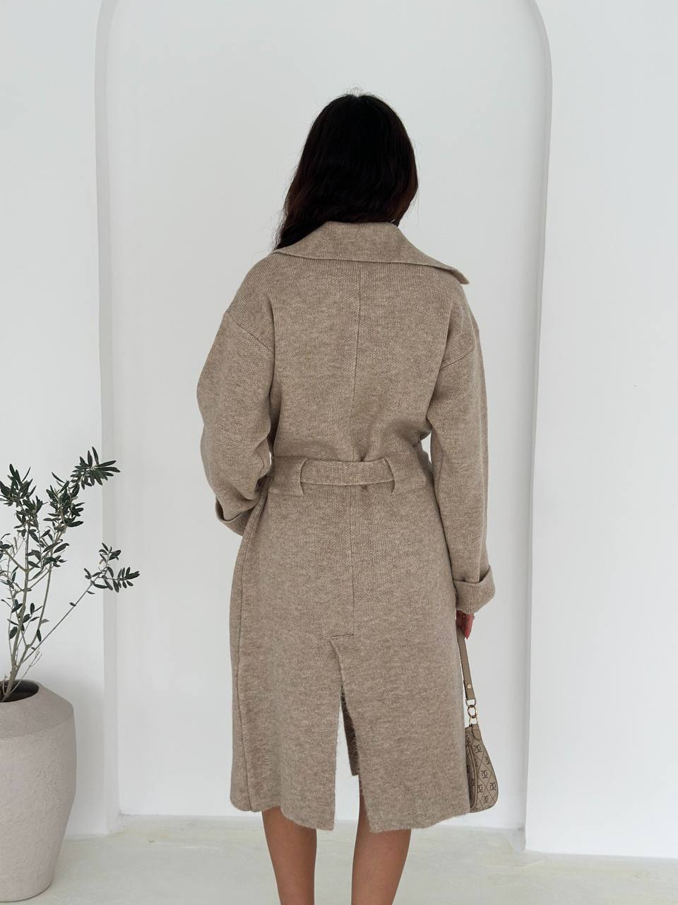 Женский Трикотажный Бежевый Кардиган - Длинный Прямого Кроя с Поясом 2,599.00 ₴