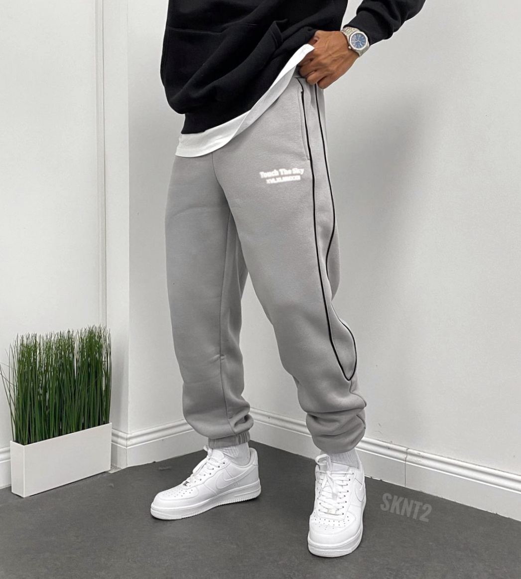 Мужские Широкие Серые Спортивные Штаны Джоггеры с Кантом – Утепленные на Флисе