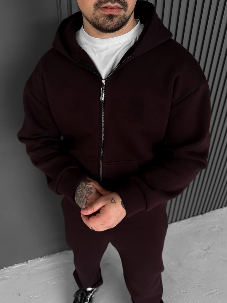 Мужское Теплое Бордовое Зип Худи с Начесом - Кофта Зипка на Молнии с Капюшоном 1,999.00 ₴