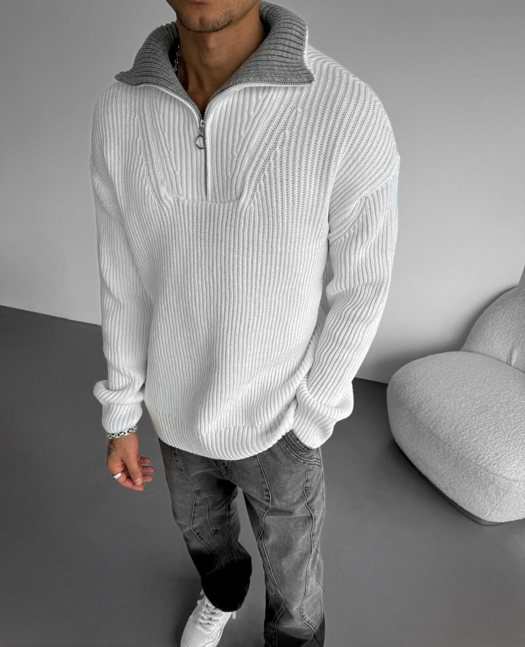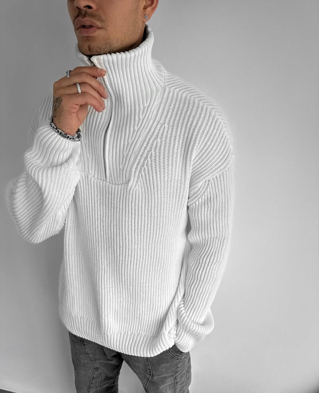 Мужской теплый свитер с высокой горловиной — Мужской Теплый Белый Свитер с Высокой Горловиной на Коротком Замке создан для ежедневного комфорта и подчёркивает стиль в любой ситуации.