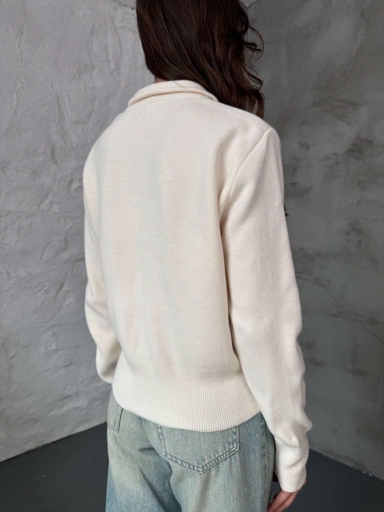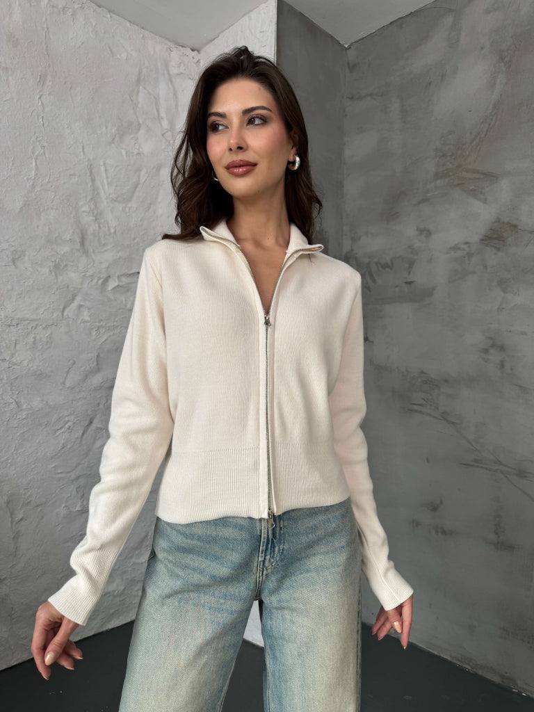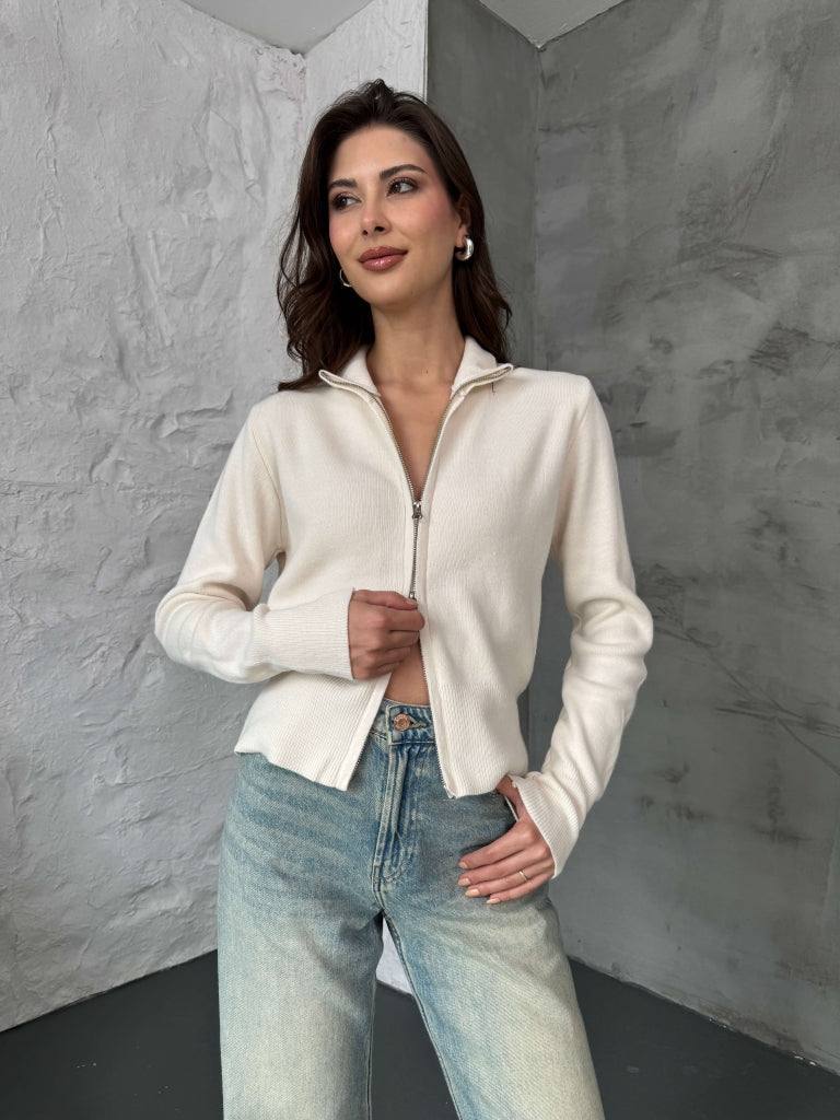 Женская Базовая Молочная Кофта на Молнии под Горло