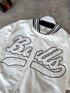 Мужской Белый Бомбер Chicago Bulls – Чикаго Буллз с Короткими Рукавами на Кнопках