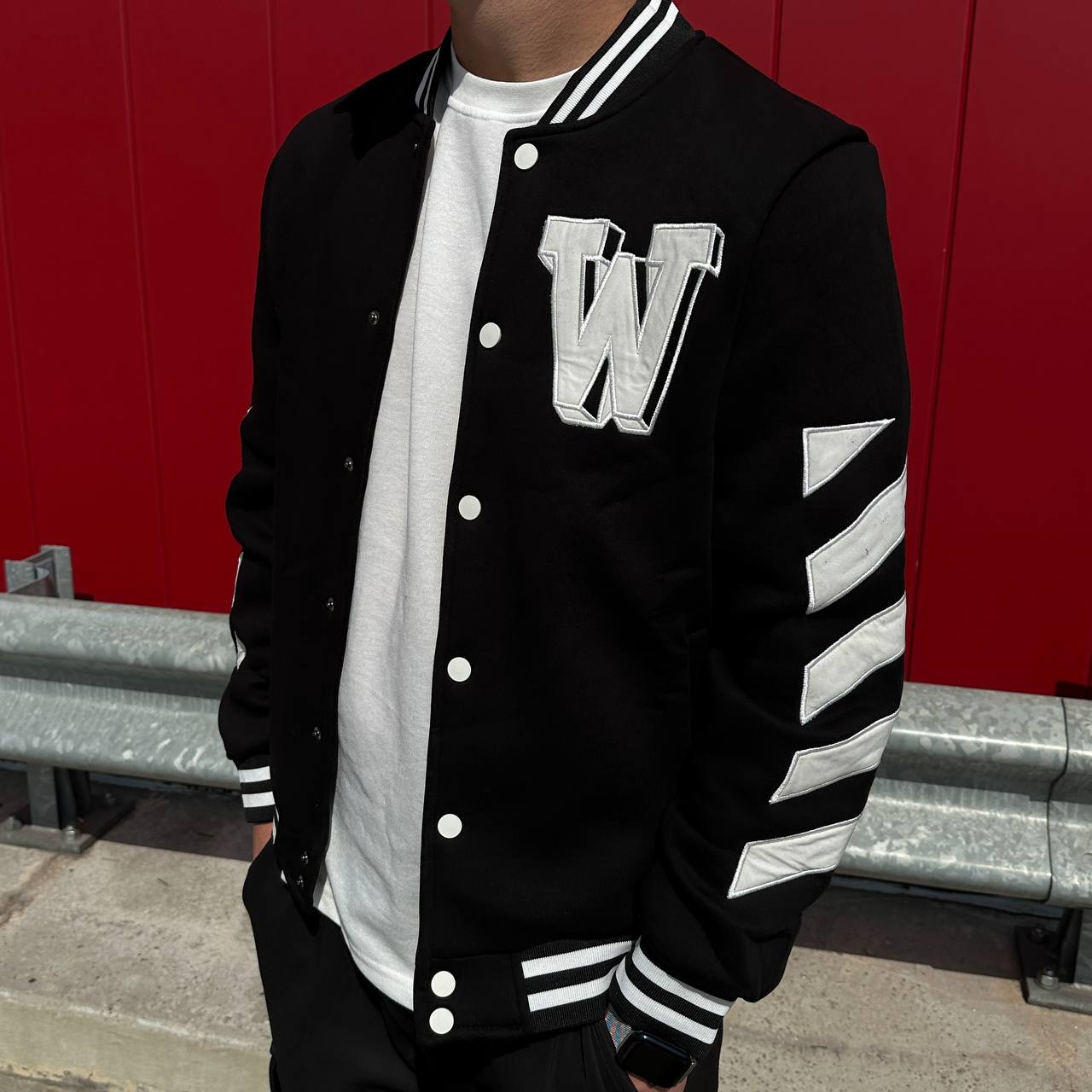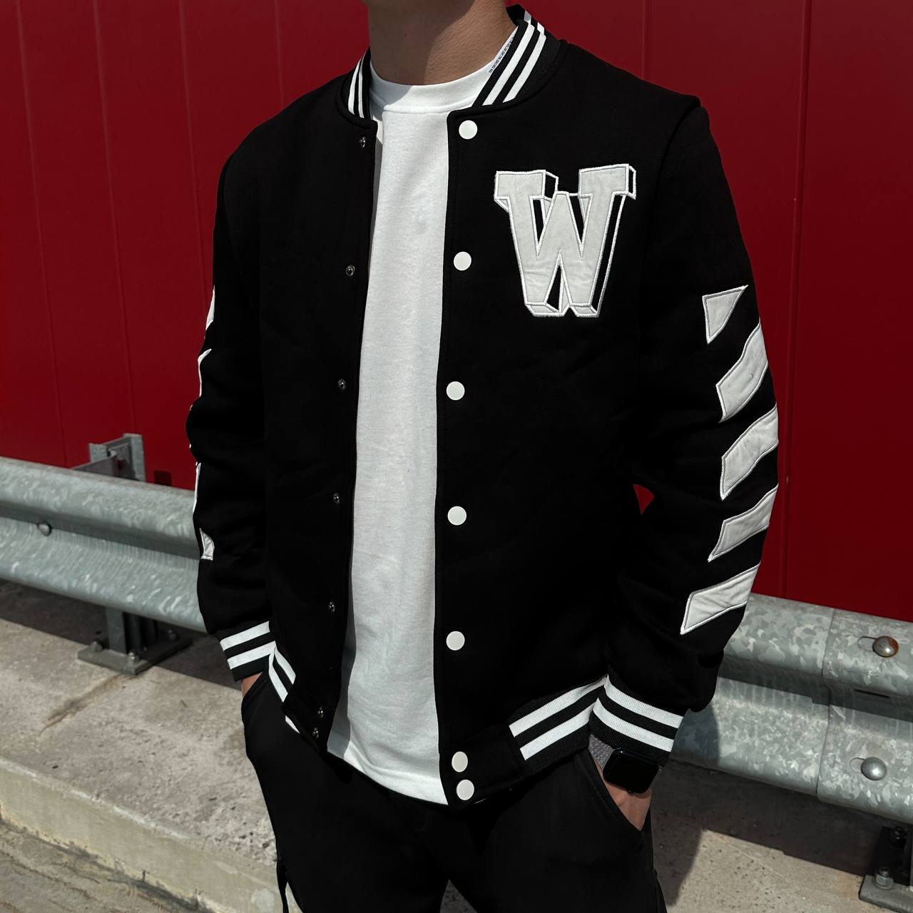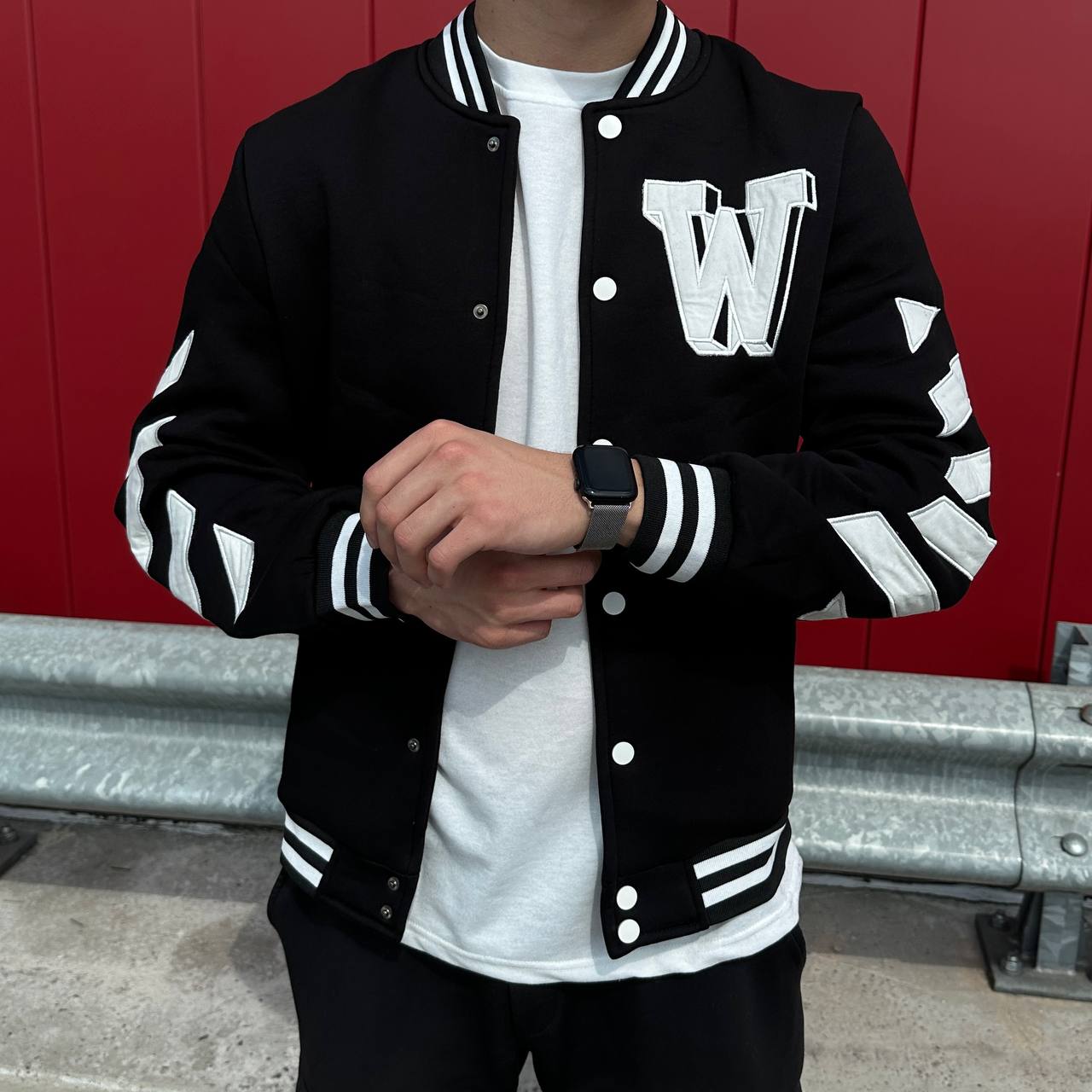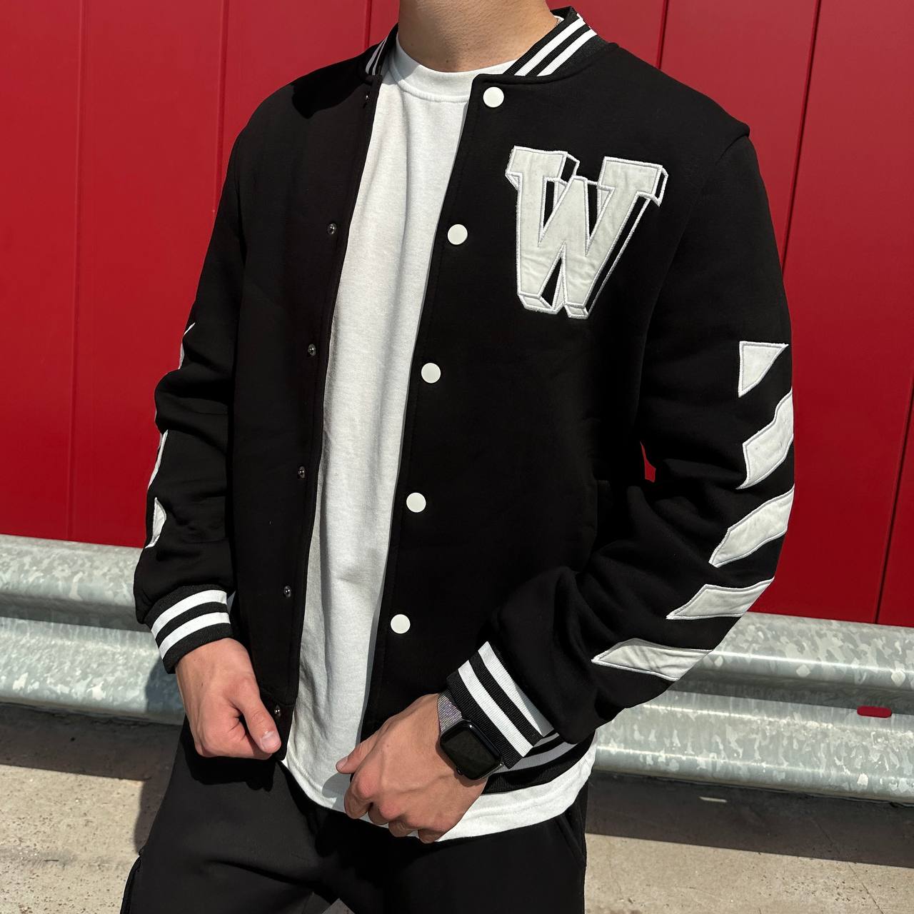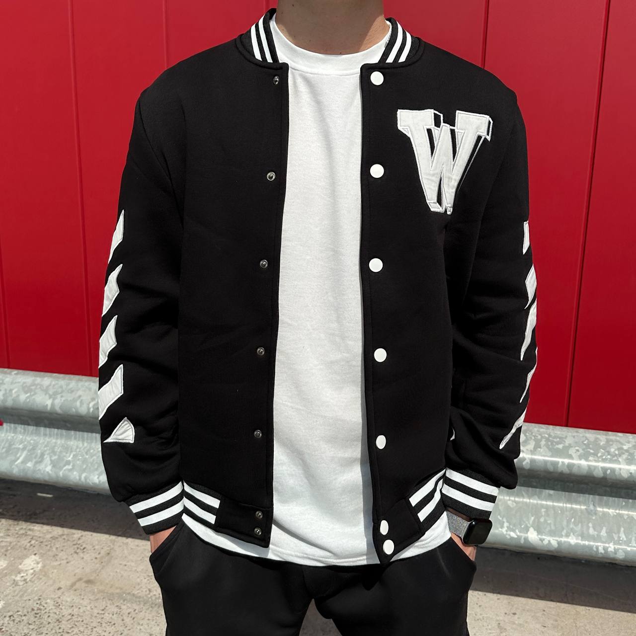 Мужской Черный Бомбер Хлопковый на Микрофлисе с Вышитыми Принтами