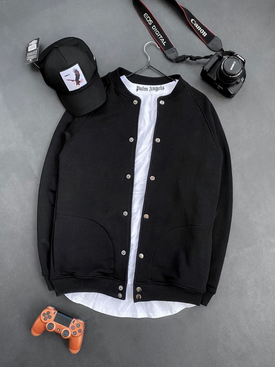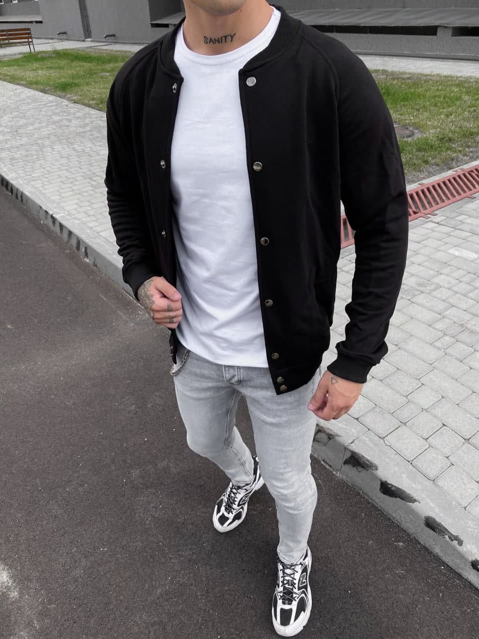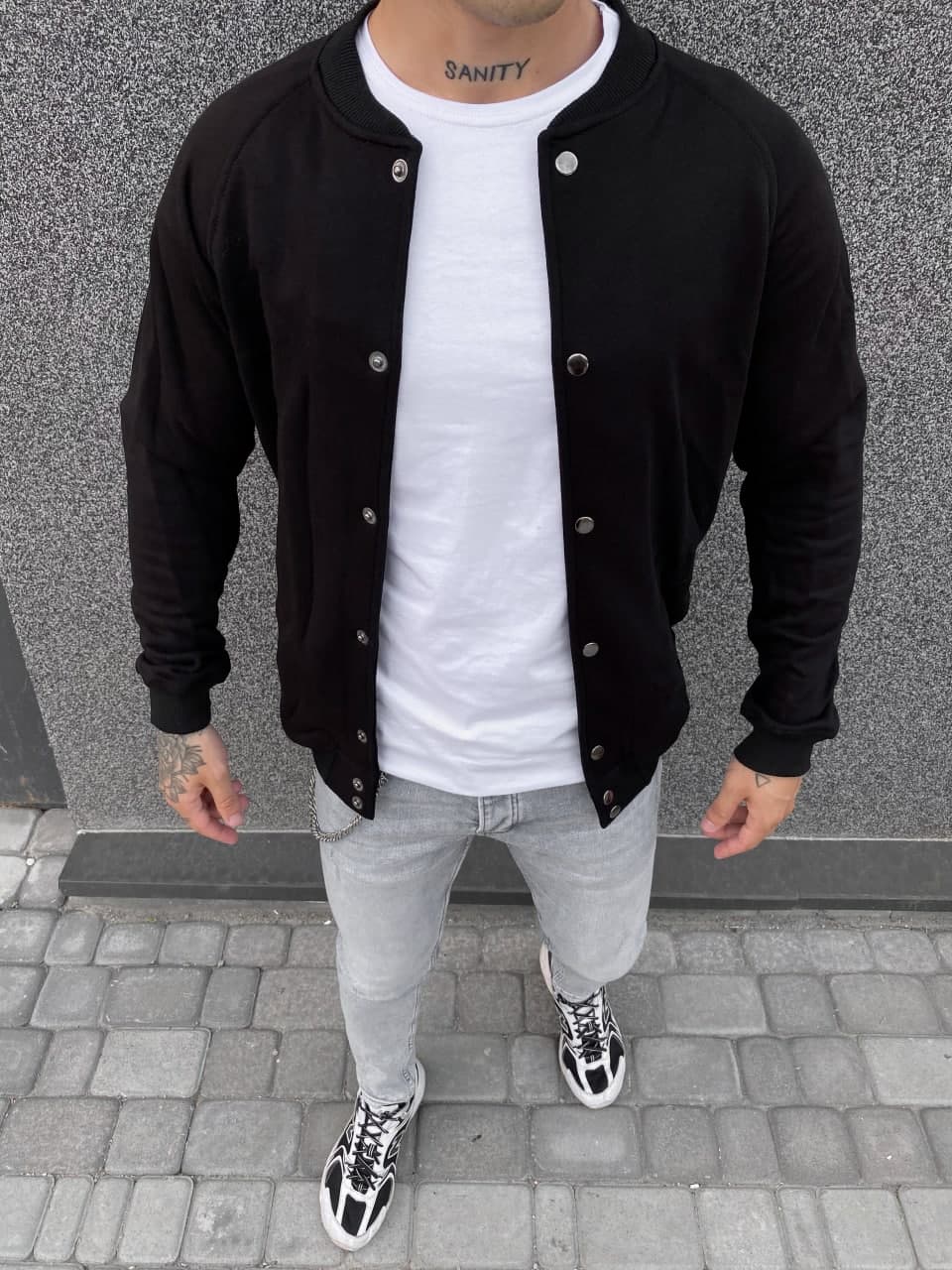 Мужской Черный Бомбер на кнопках заклепках – Кофта с Манжетом