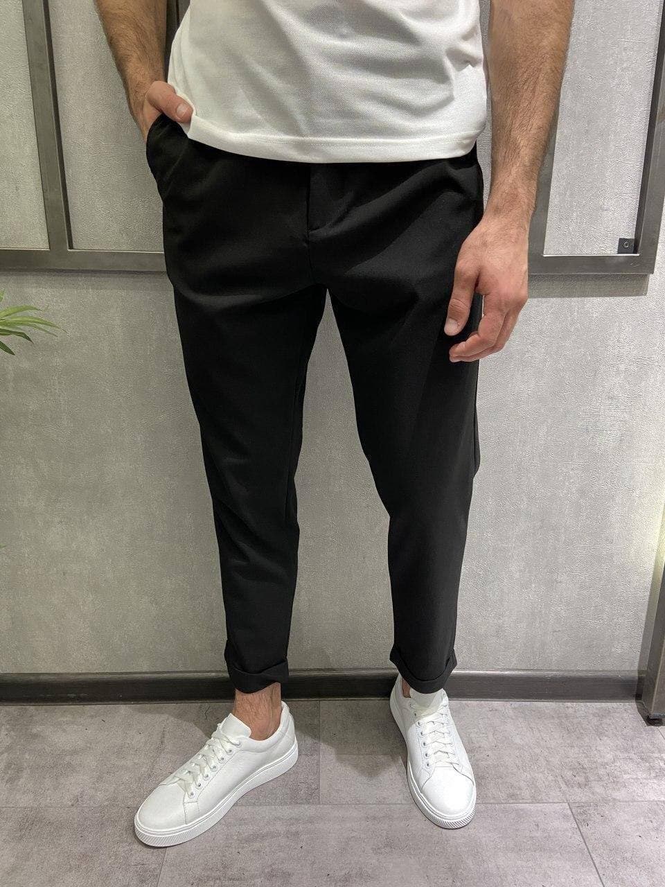 Мужские Брюки Черного Цвета Классические с Подворотами
