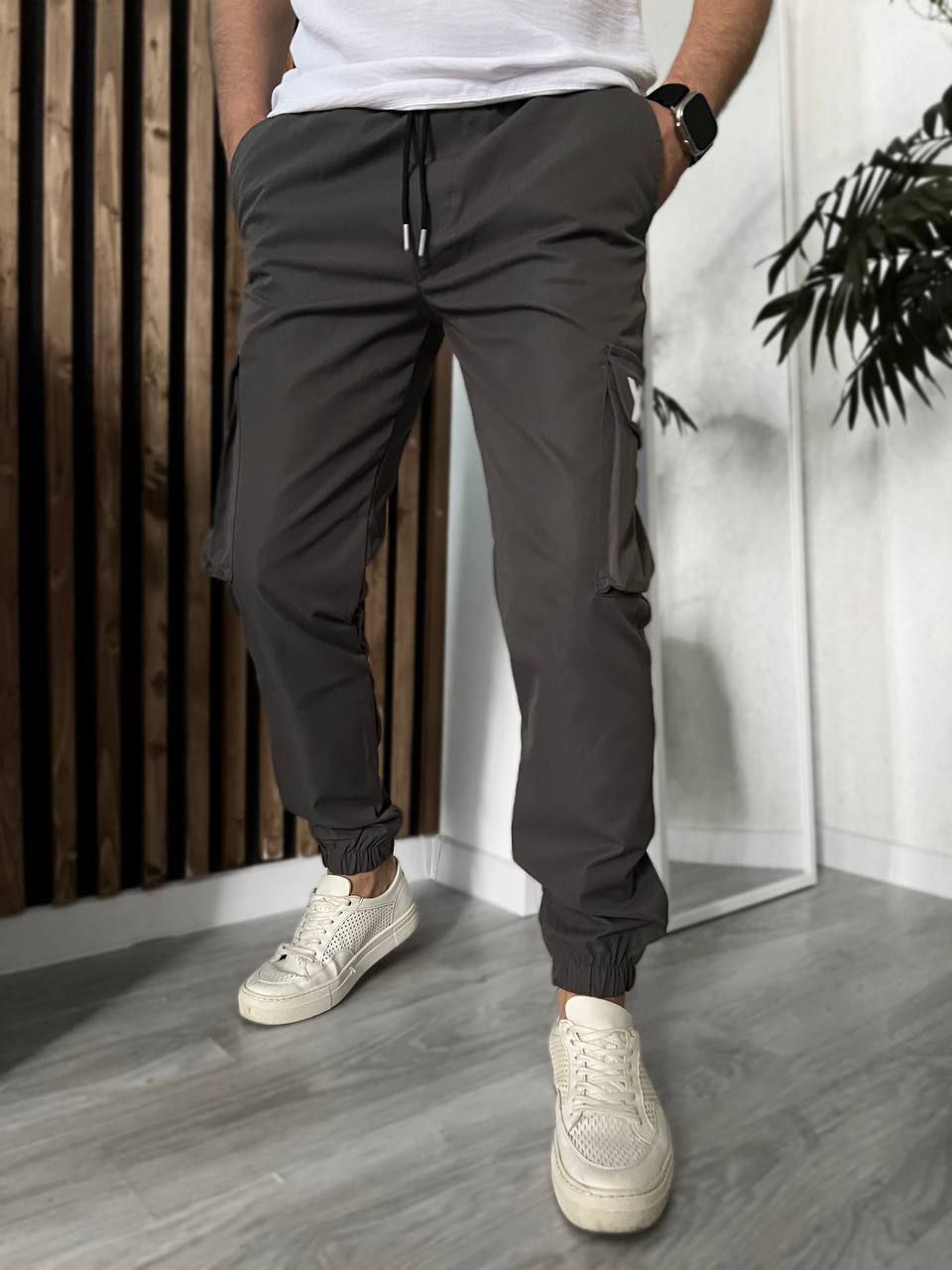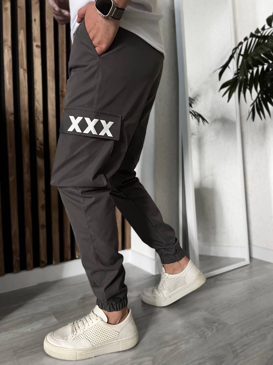 Мужские Графитовые Брюки Джоггеры Карго с Принтом на Кармане “XXX”