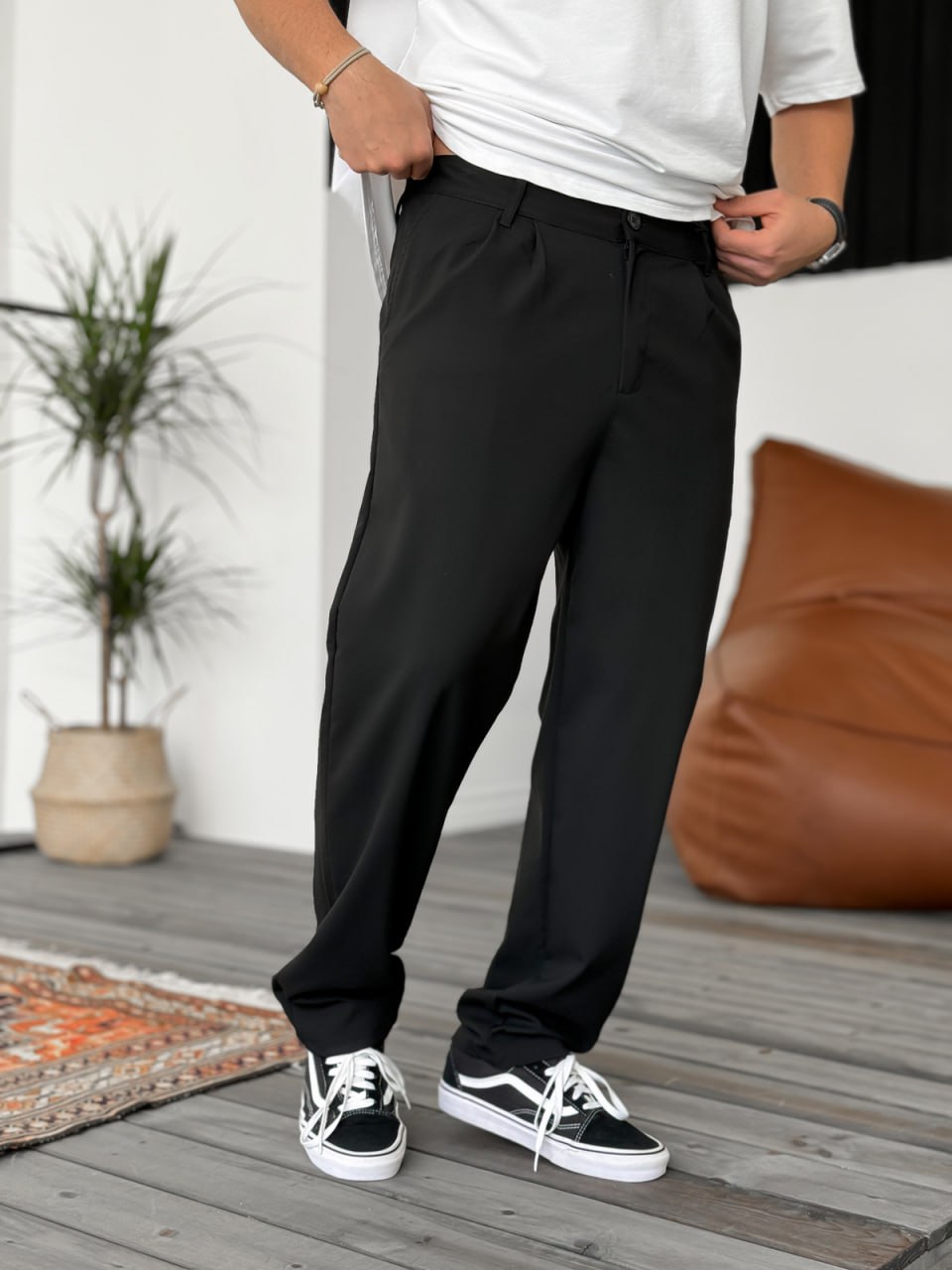 Мужские Классические Широкие Черные Штаны Брюки Свободного Кроя
