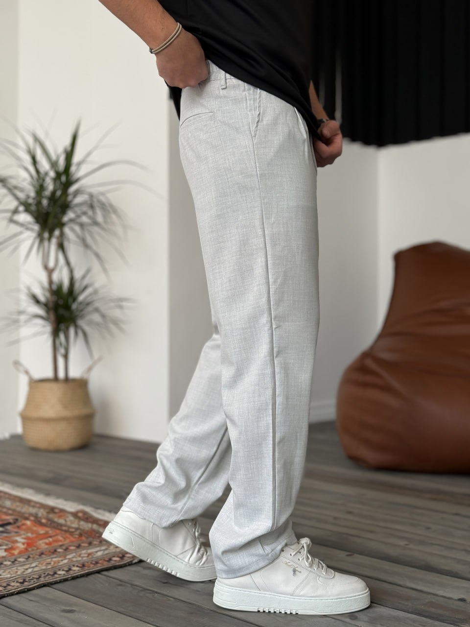 Мужские Классические Широкие Серые Штаны Брюки Свободного Кроя