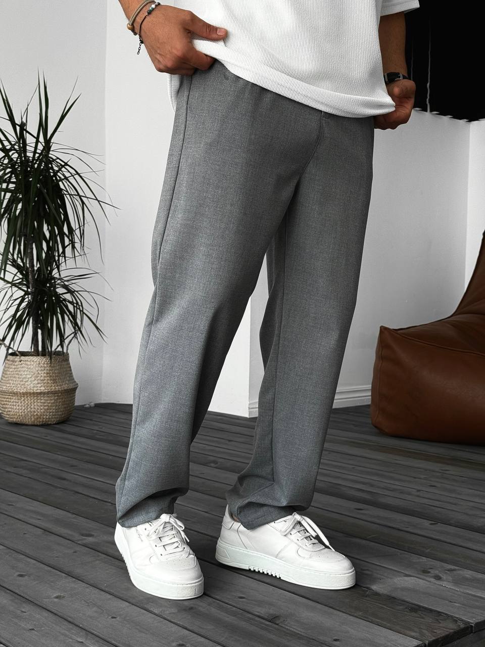 Мужские Классические Широкие Темно-Серые Штаны Брюки Свободного Кроя