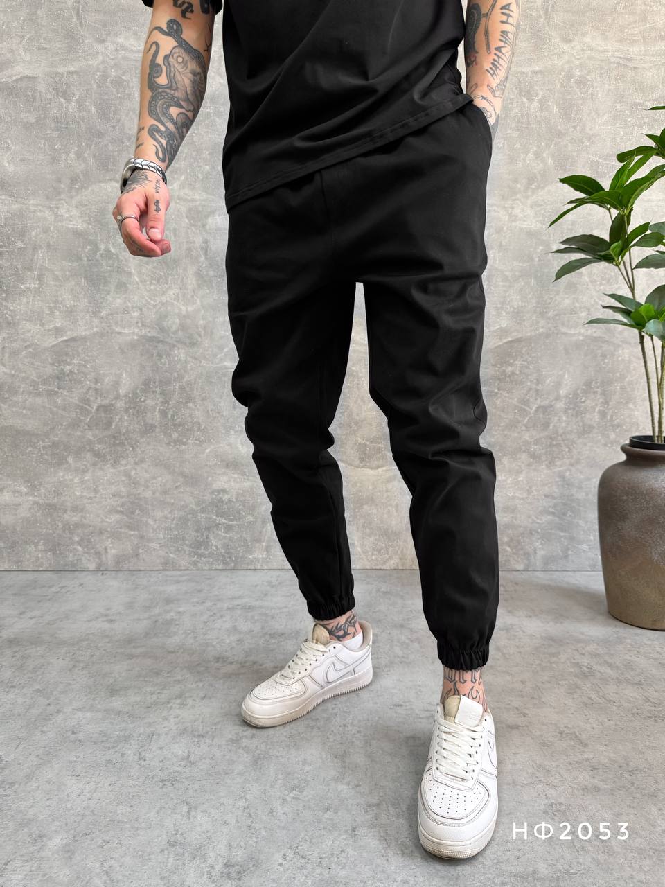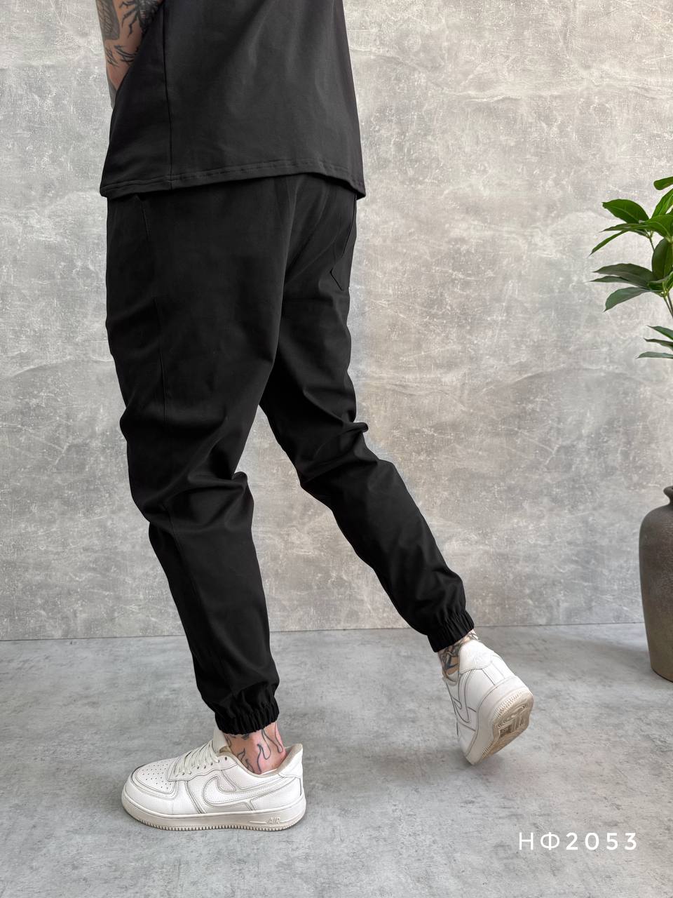 Мужские Коттоновые Черные Штаны Брюки с Мажетами на Резинке