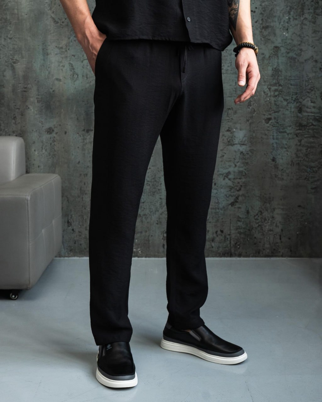 Мужские Легкие Летние Черные Штаны Лен Жатка Свободного Кроя
