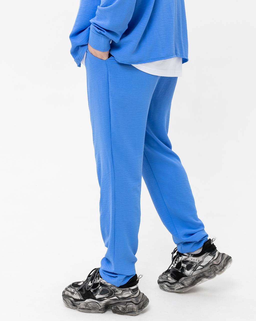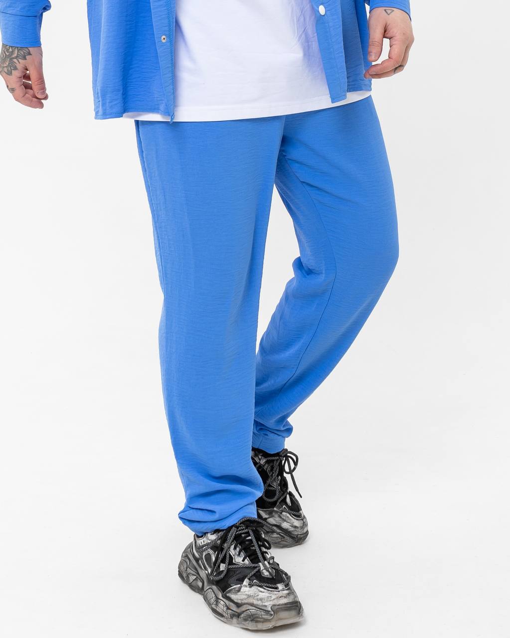 Мужские Легкие Летние Голубые Штаны Креп Жатка Свободного Кроя