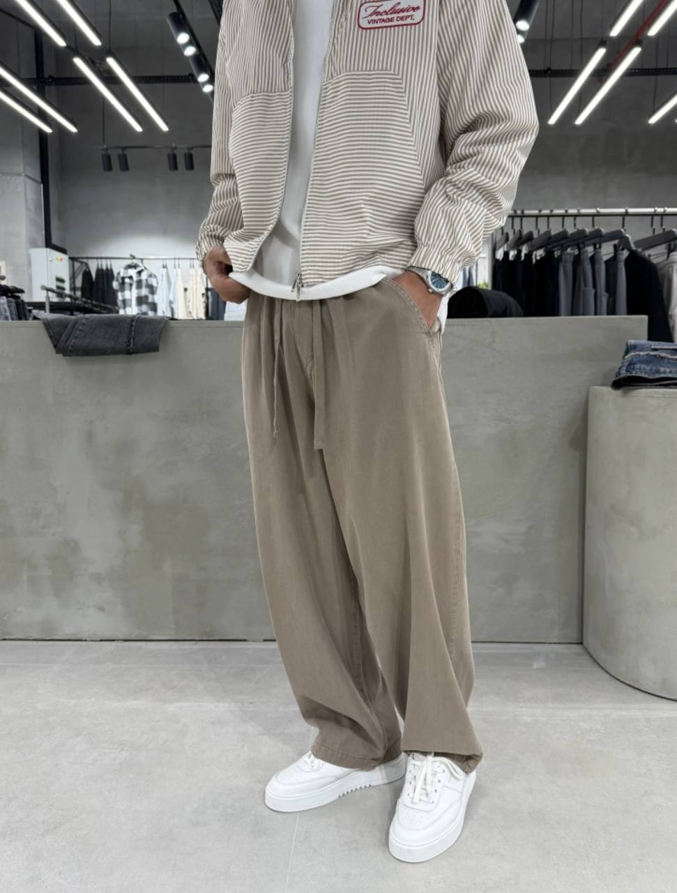 Мужские Широкие Коричневые Штаны Брюки Багги Варенки