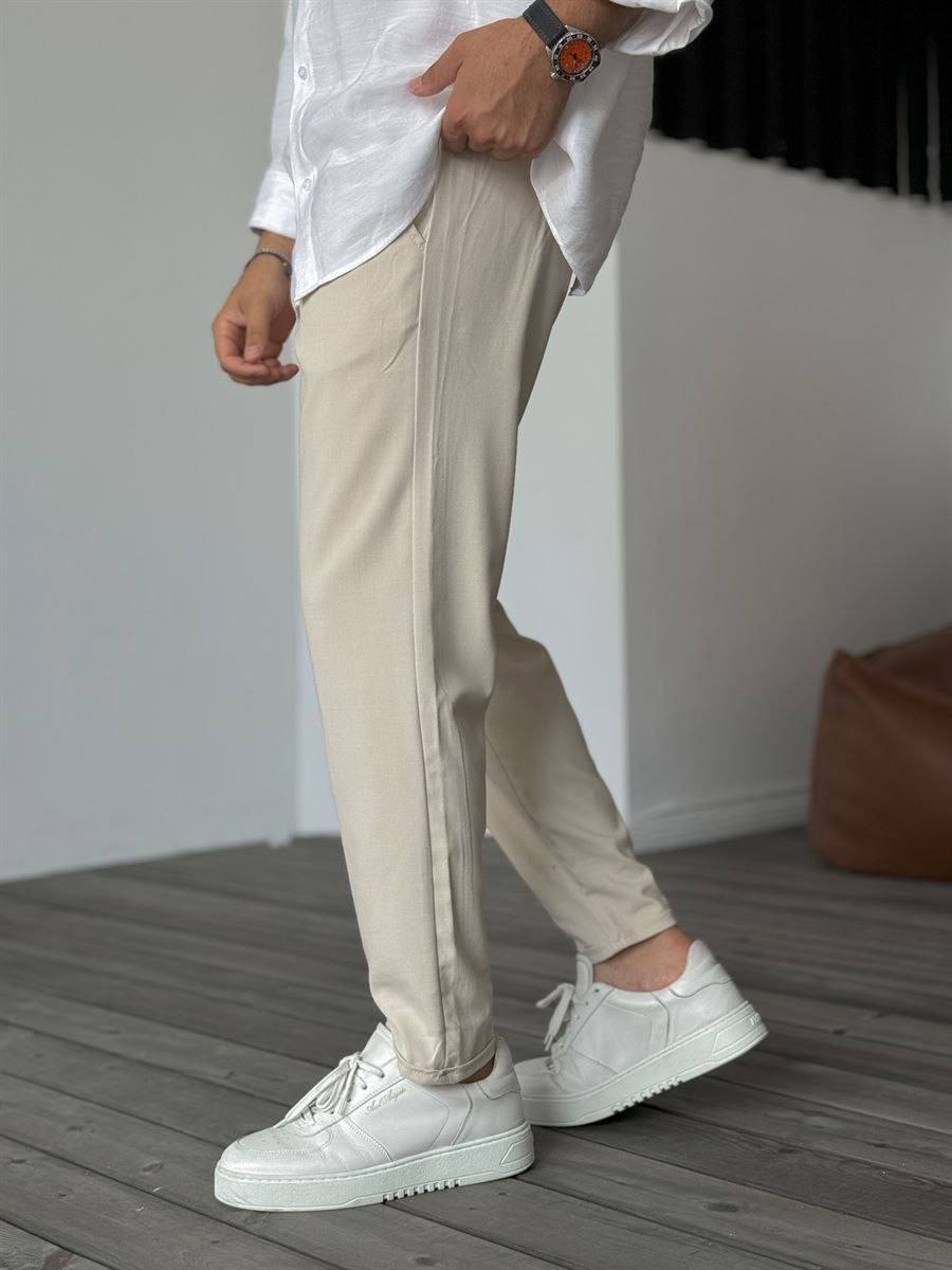 Мужские Бежевые Спортивные Брюки – Зауженные к Низу Укороченные на Шнурке