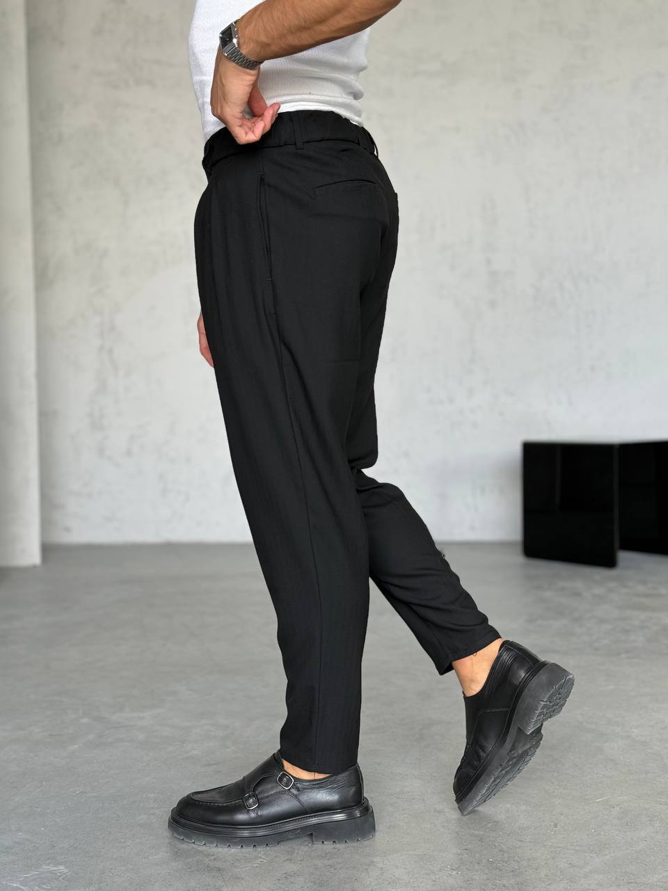 Мужские Укороченные Классические Черные Штаны Брюки – Свободные со Складками