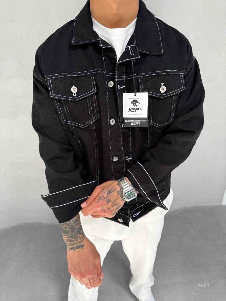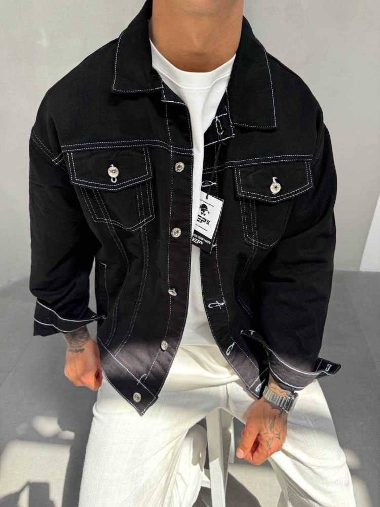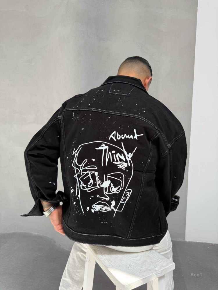 Мужская Черная Джинсовка Свободного Кроя – Джинсовая Куртка Оверсайз с Принтом на Спине