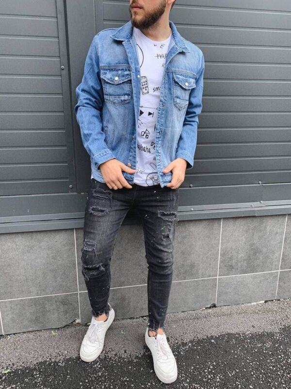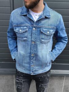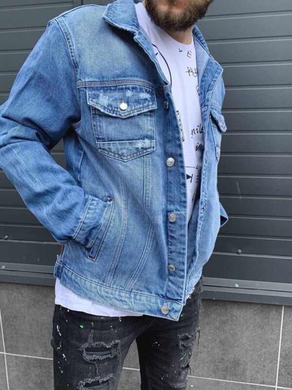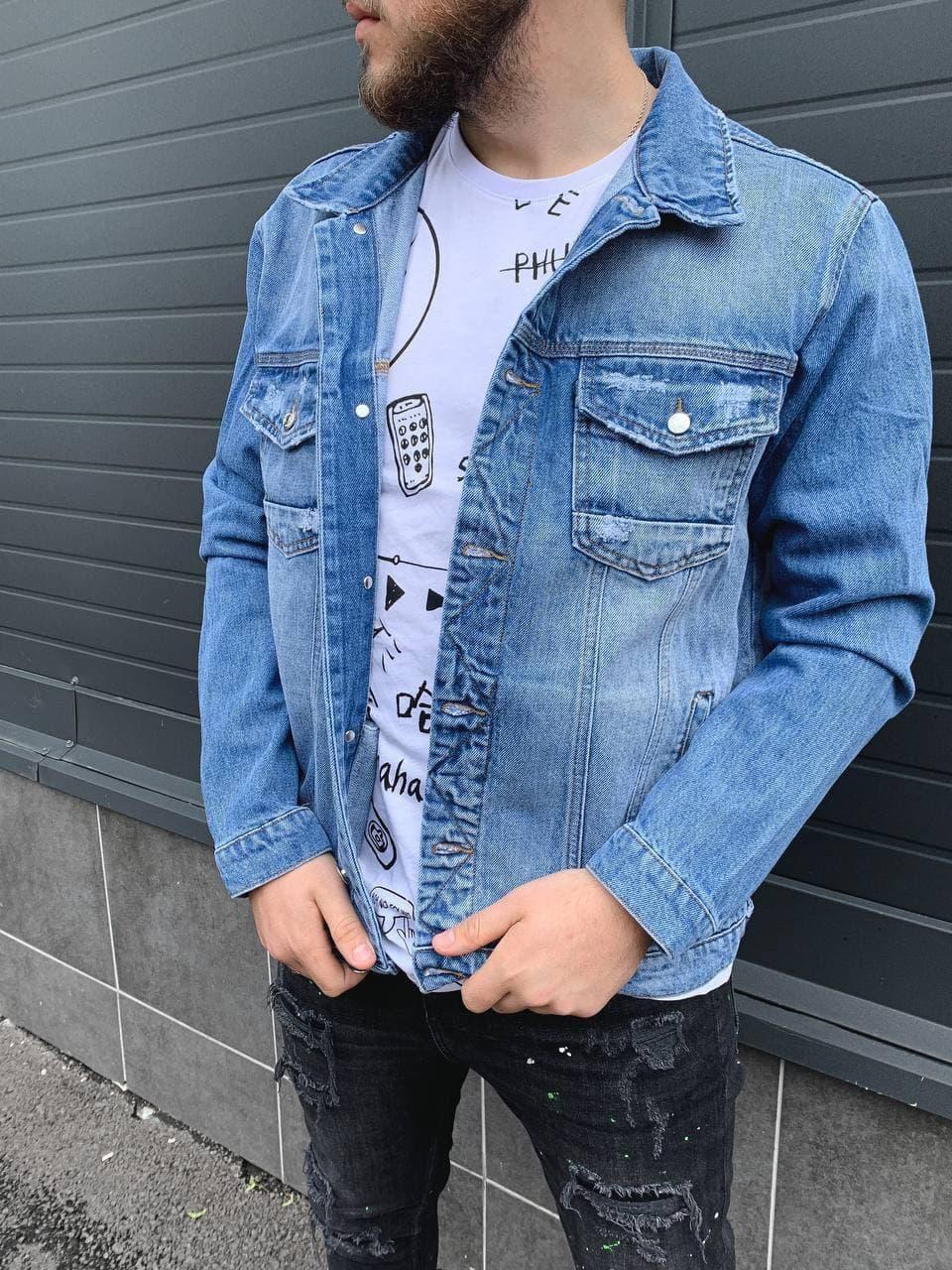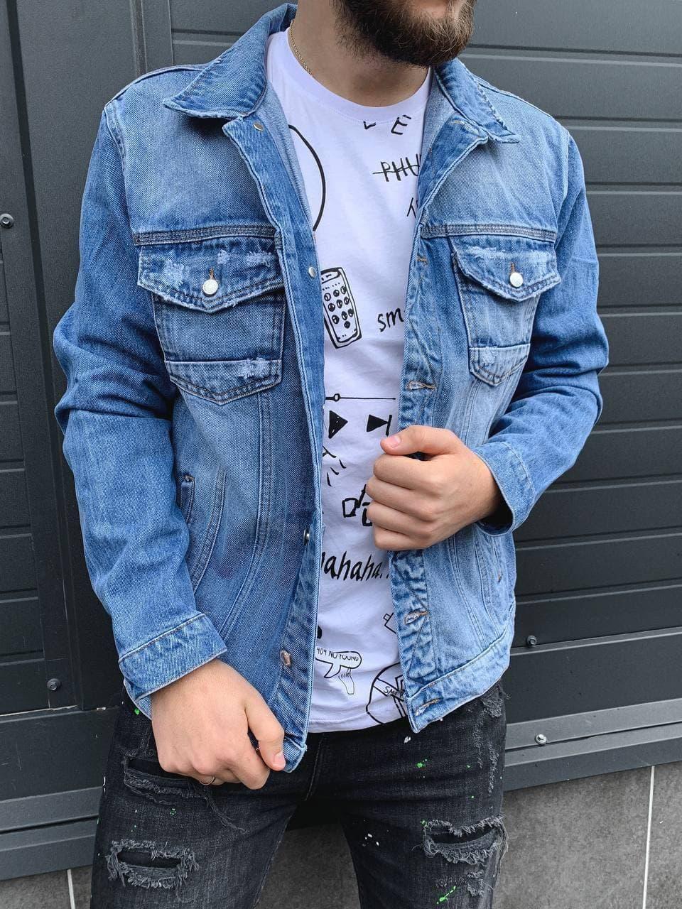 Мужская Джинсовая Куртка Голубая 2021 – Джинсовка Голубого цвета