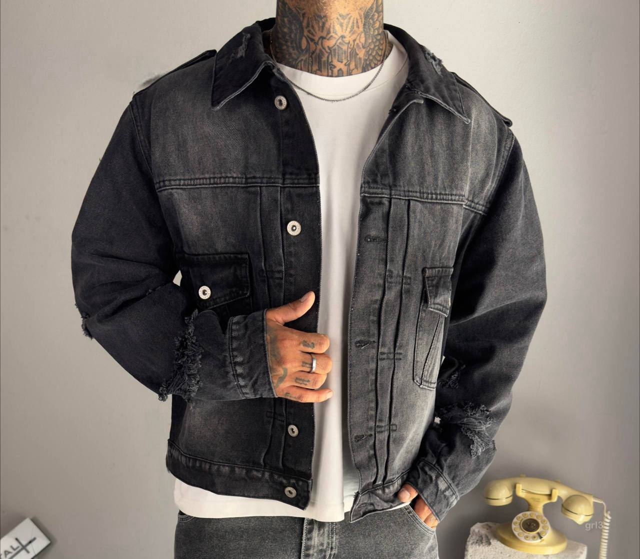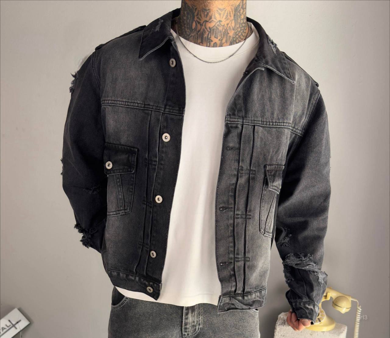 Мужская Графитовая Джинсовка Оверсайз – Джинсовая Куртка Рваная