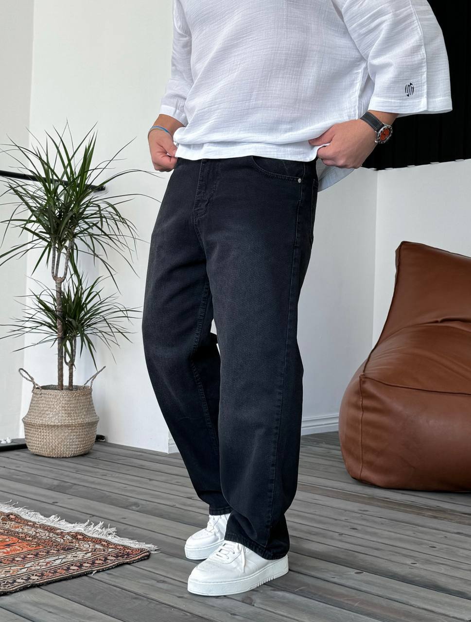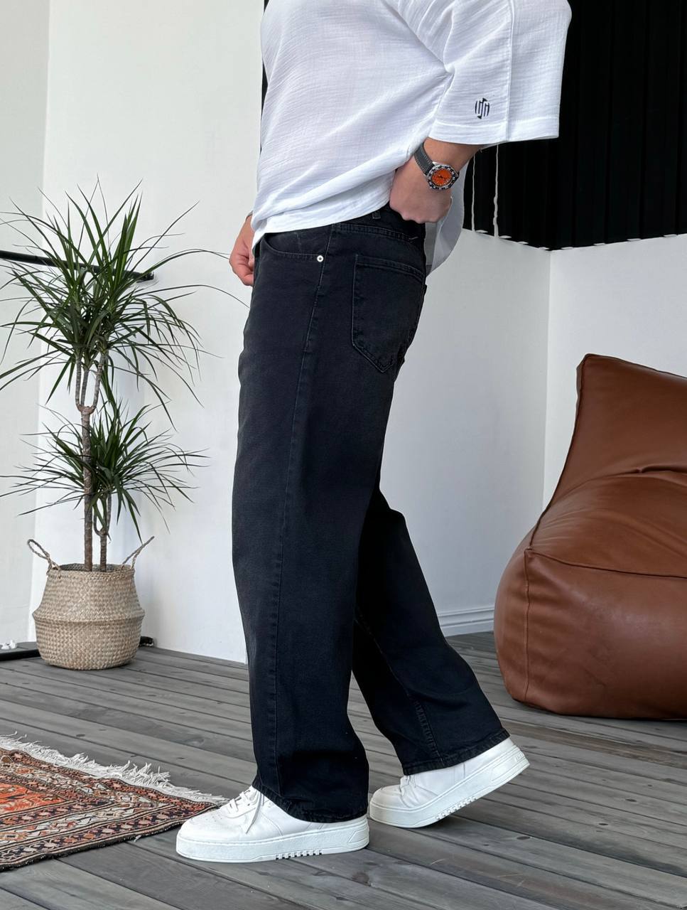 Мужские Черные Джинсы Багги – Широкие Джинсовые Штаны Прямого Кроя