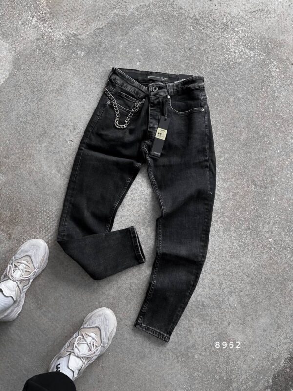 Мужские Черные Джинсы Варенки Зауженного Кроя с Цепью