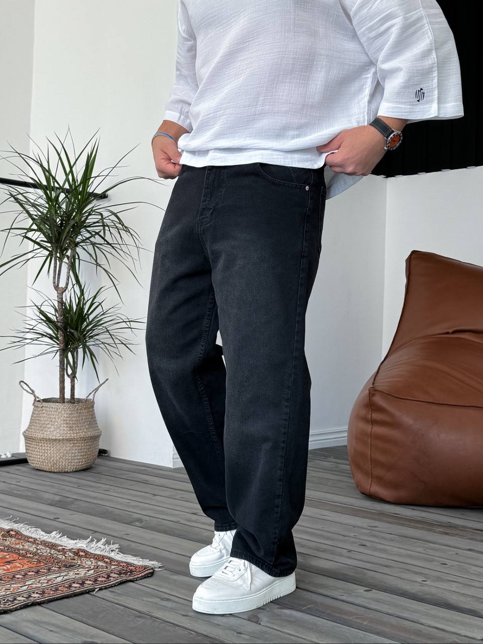 Мужские Джинсы Багги Черного Цвета – Широкие Оверсайз