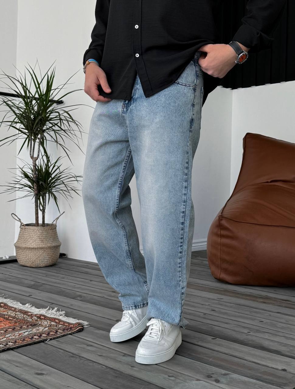 Мужские Голубые Джинсы Багги – Широкие Джинсовые Штаны Прямого Кроя