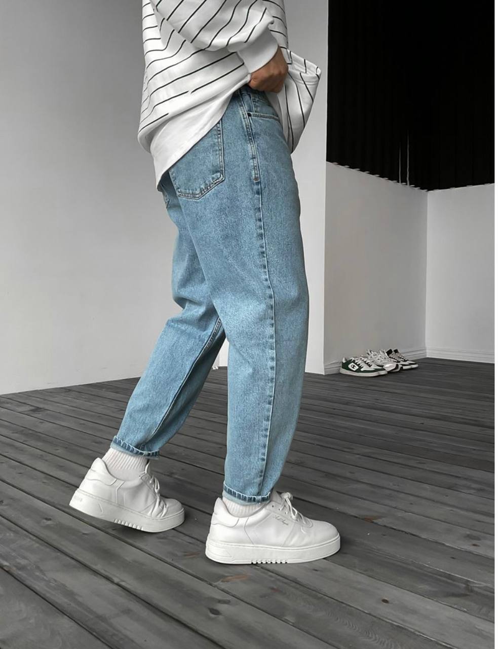 Мужские Голубые Джинсы Mom – Свободные Джинсовые Штаны Момы
