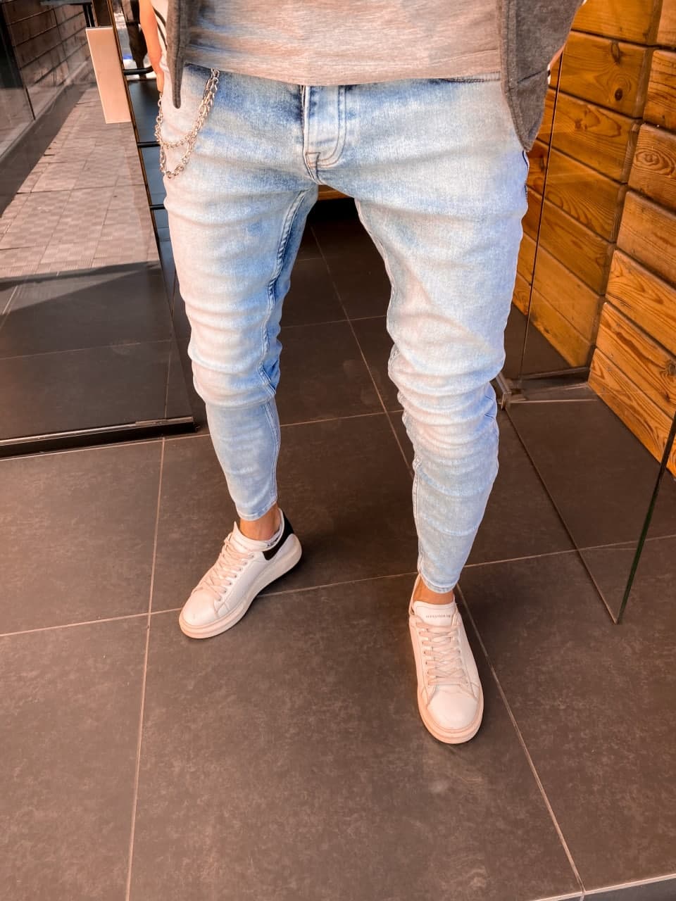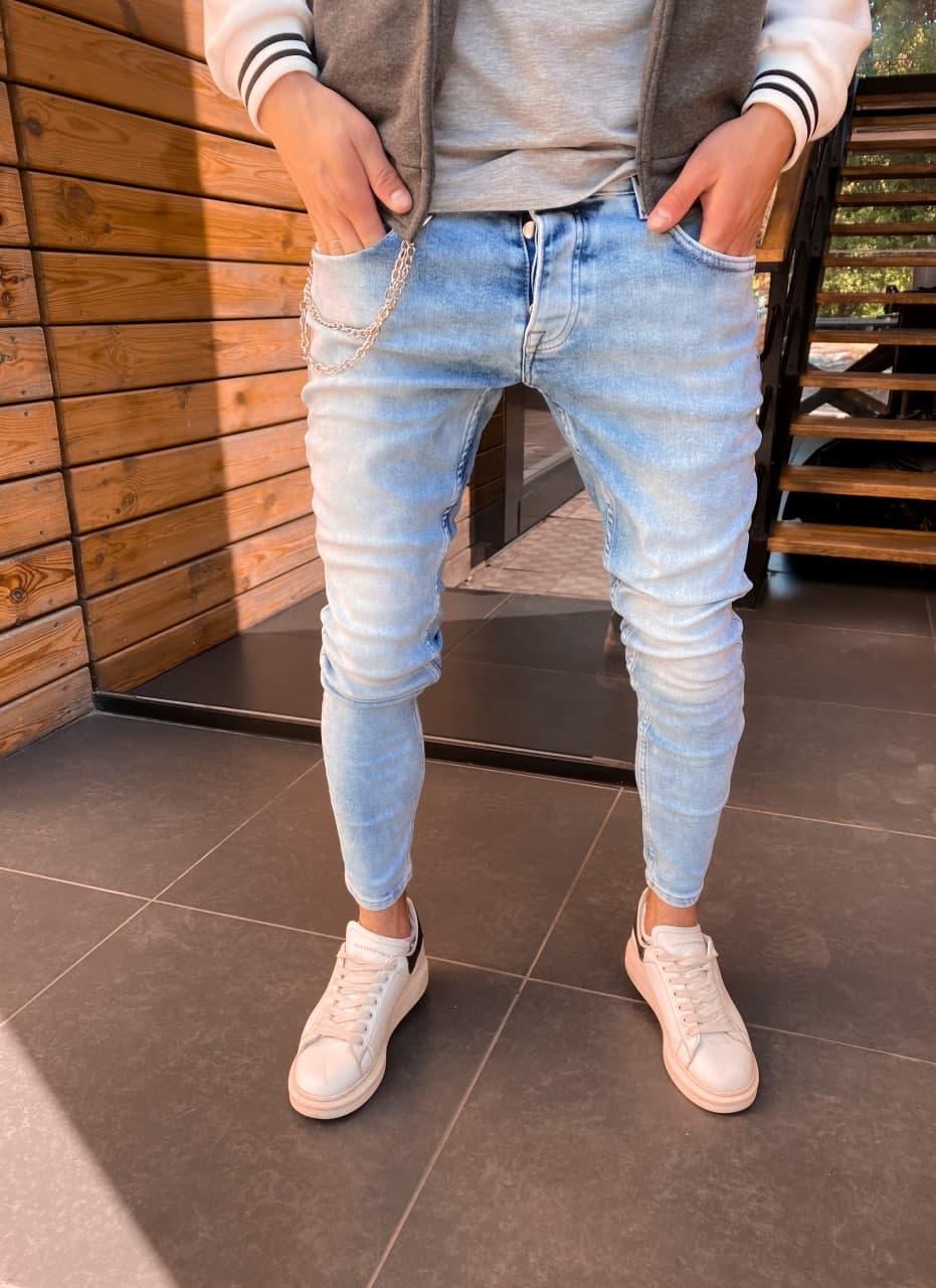 Мужские Голубые Джинсы Узкие – Светлые Зауженные