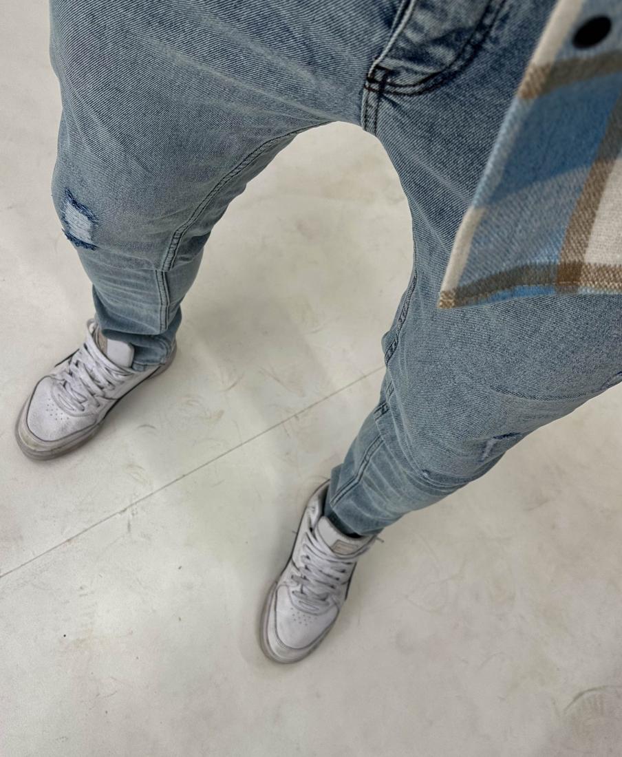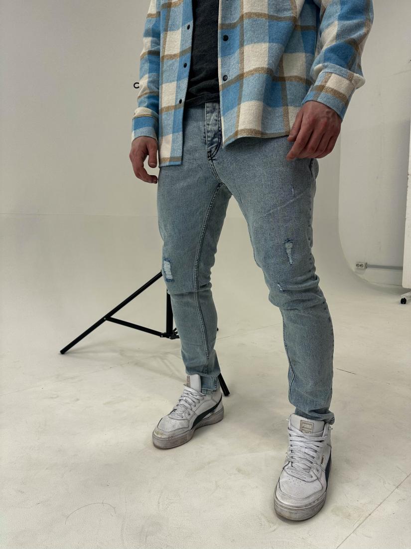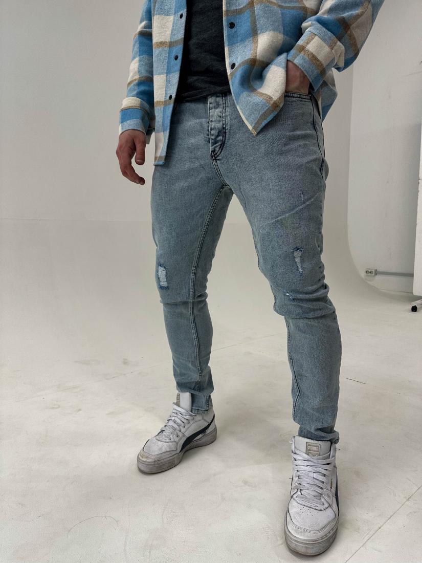 Мужские Голубые Джинсы Варенки – Зауженного Кроя Рваные