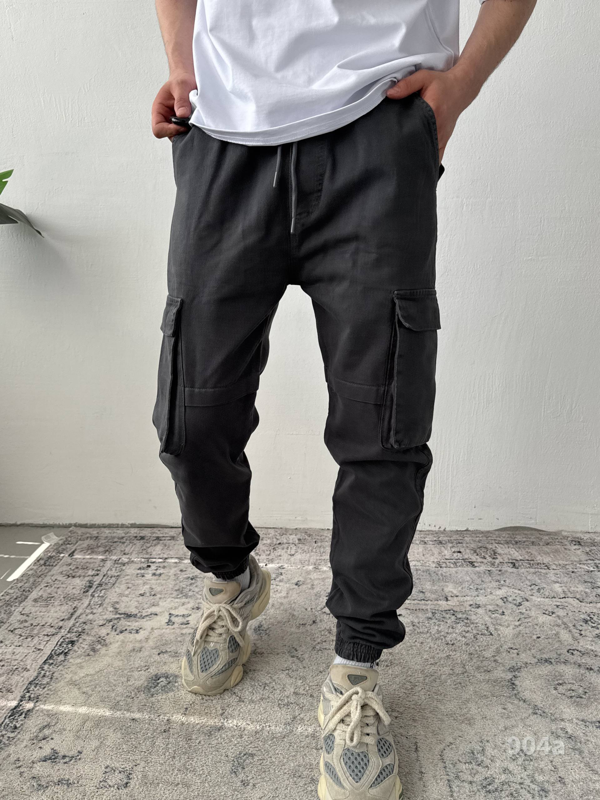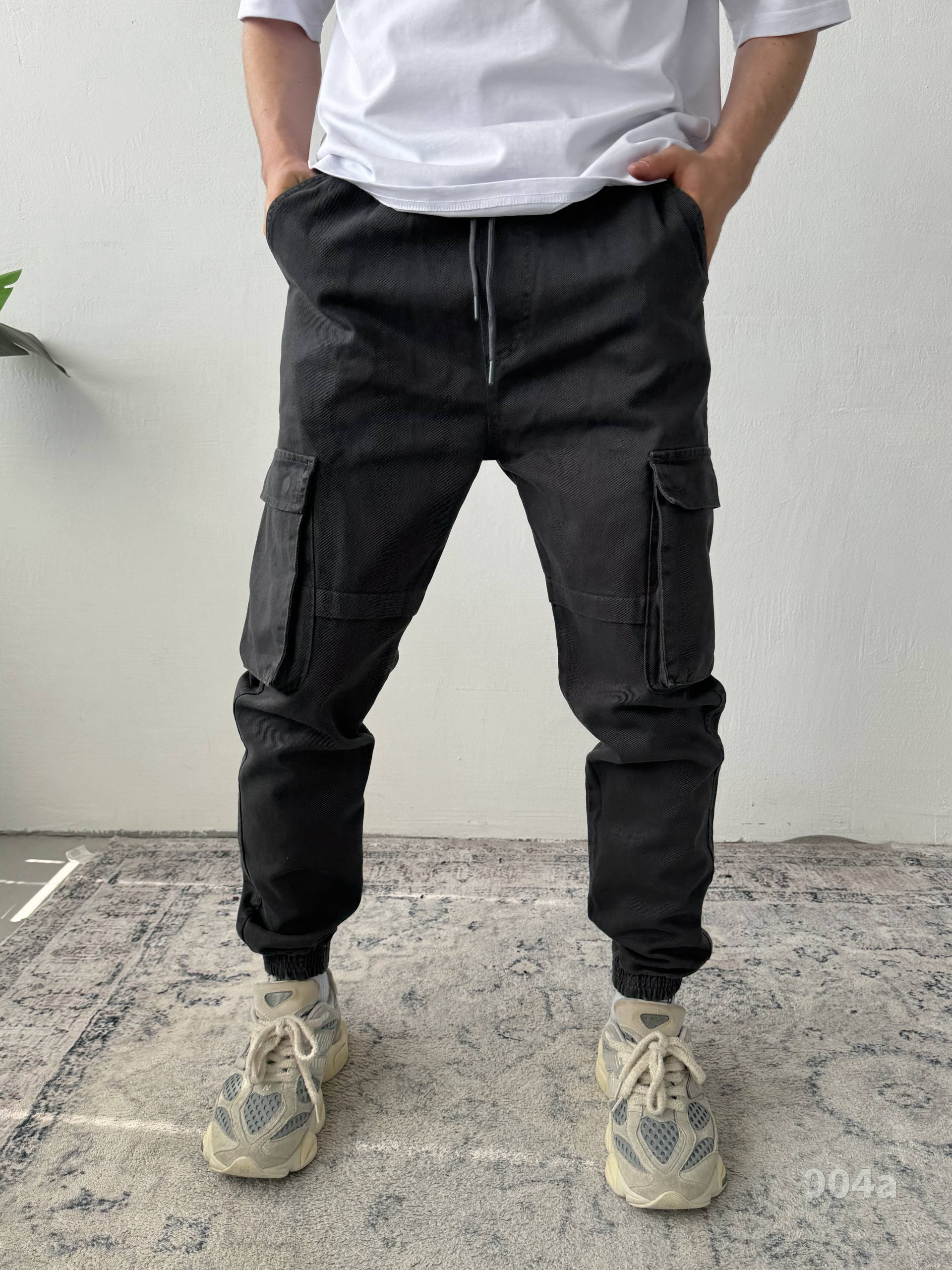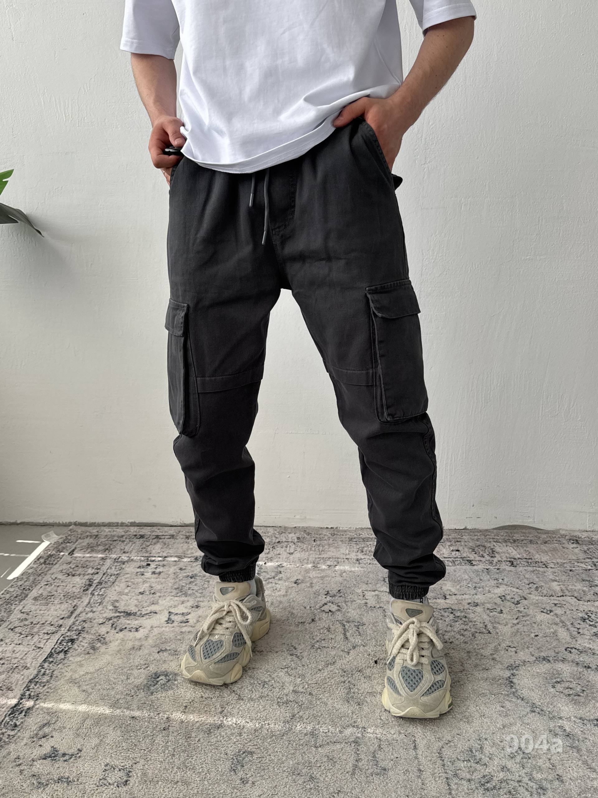 Мужские Графитовые Джинсы Карго – Свободные с Накладными Карманами и Манжетами на Резинке