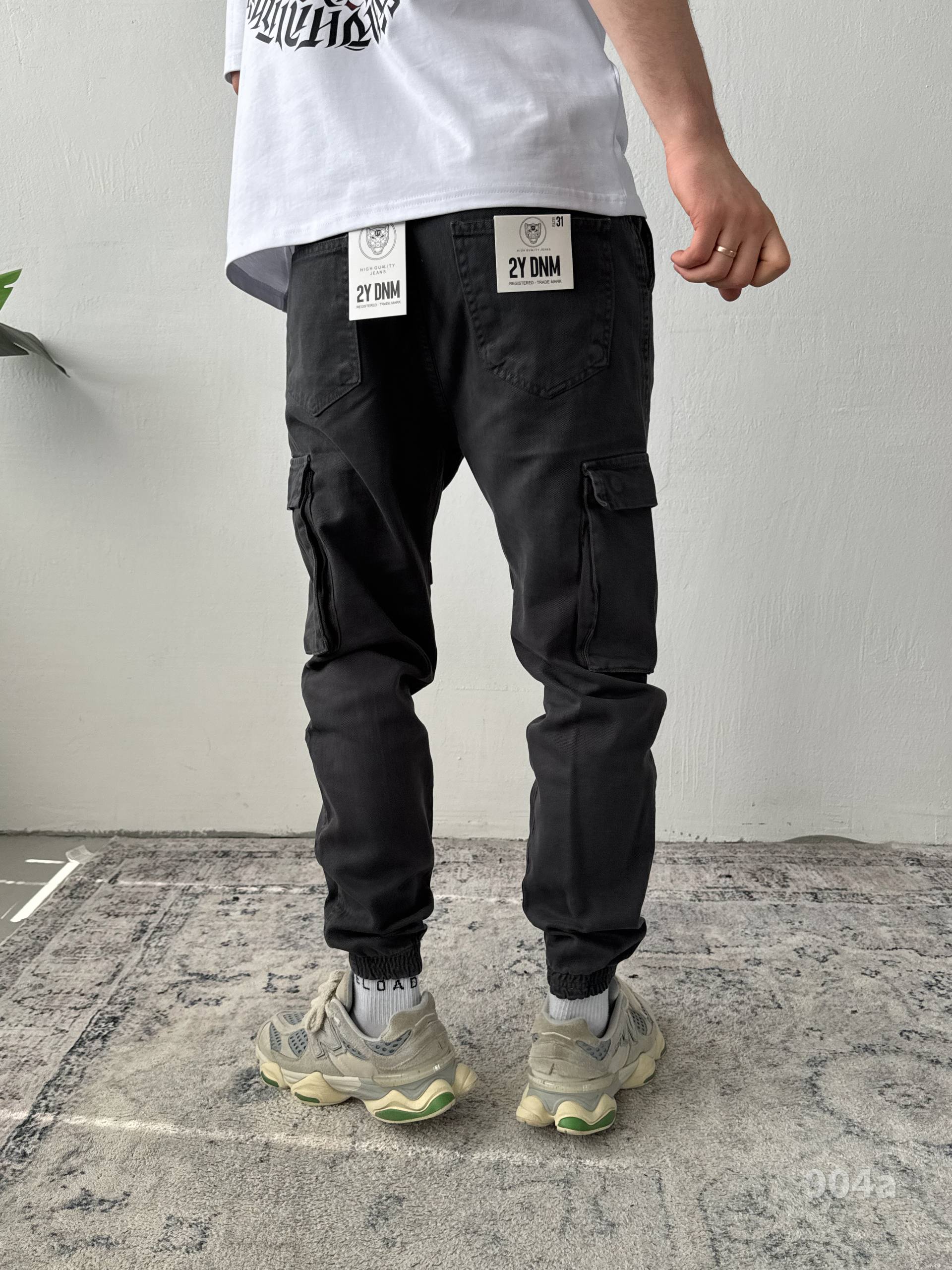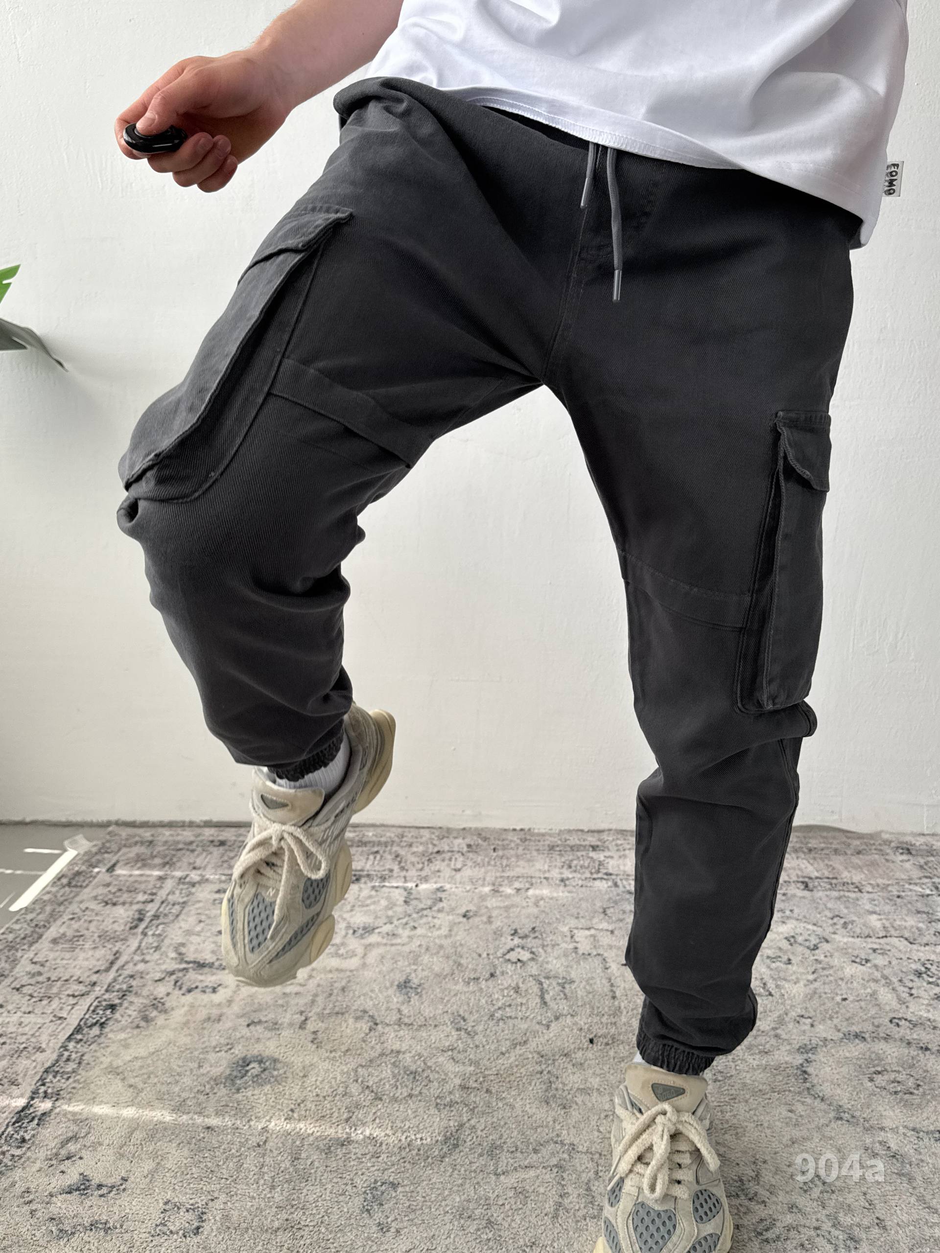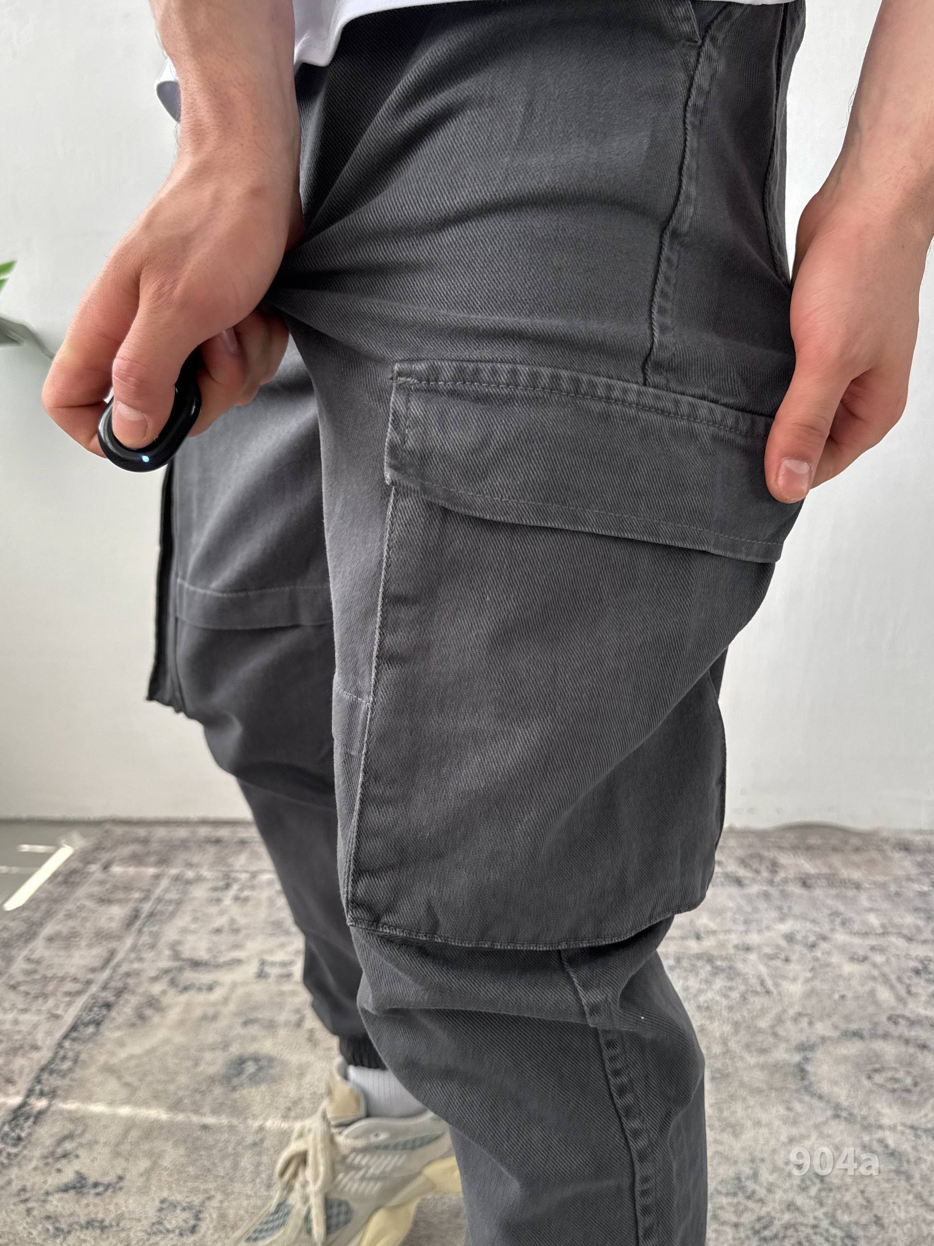 Мужские Графитовые Джинсы Карго – Свободные с Накладными Карманами и Манжетами на Резинке