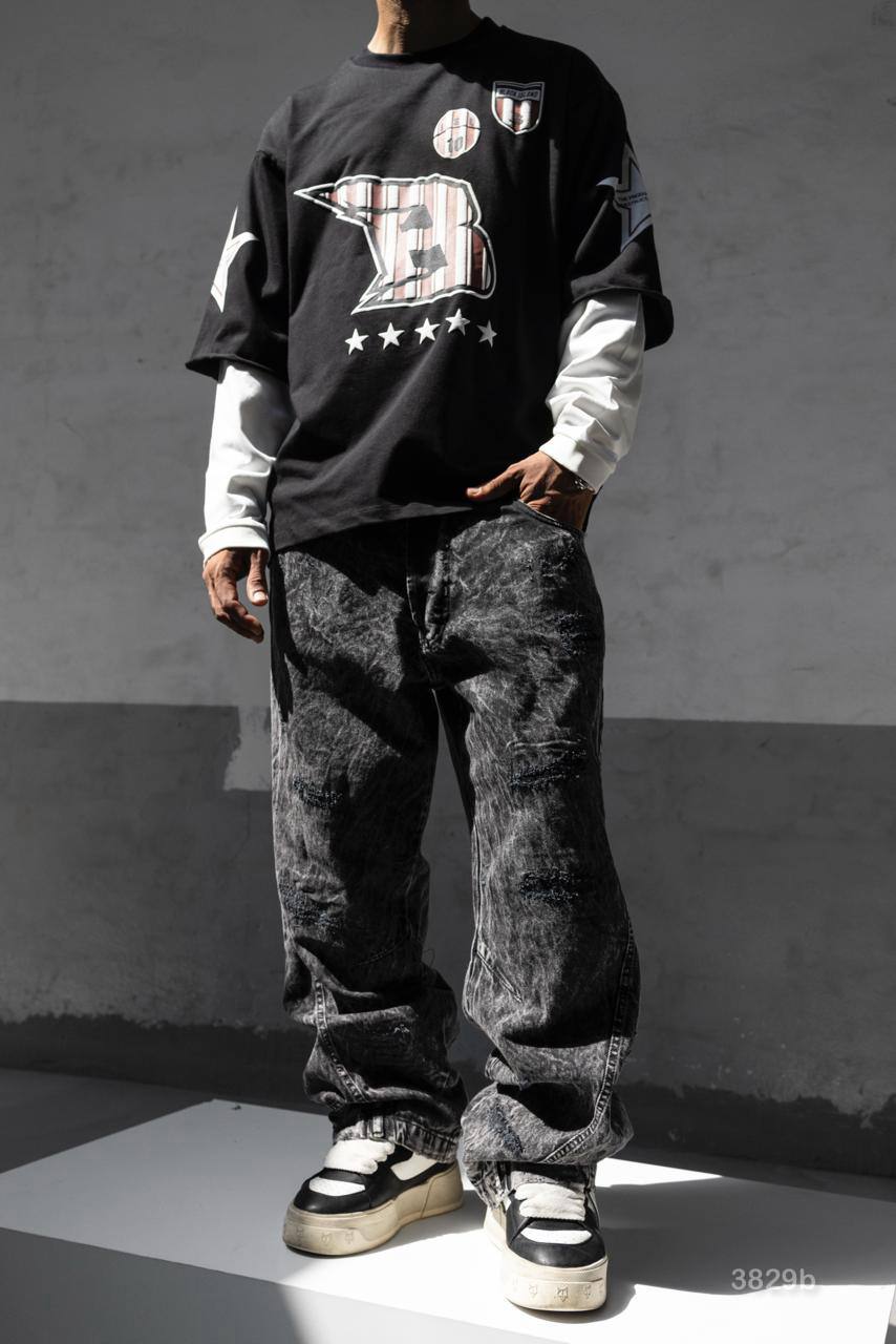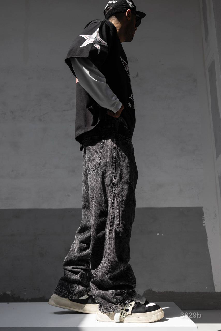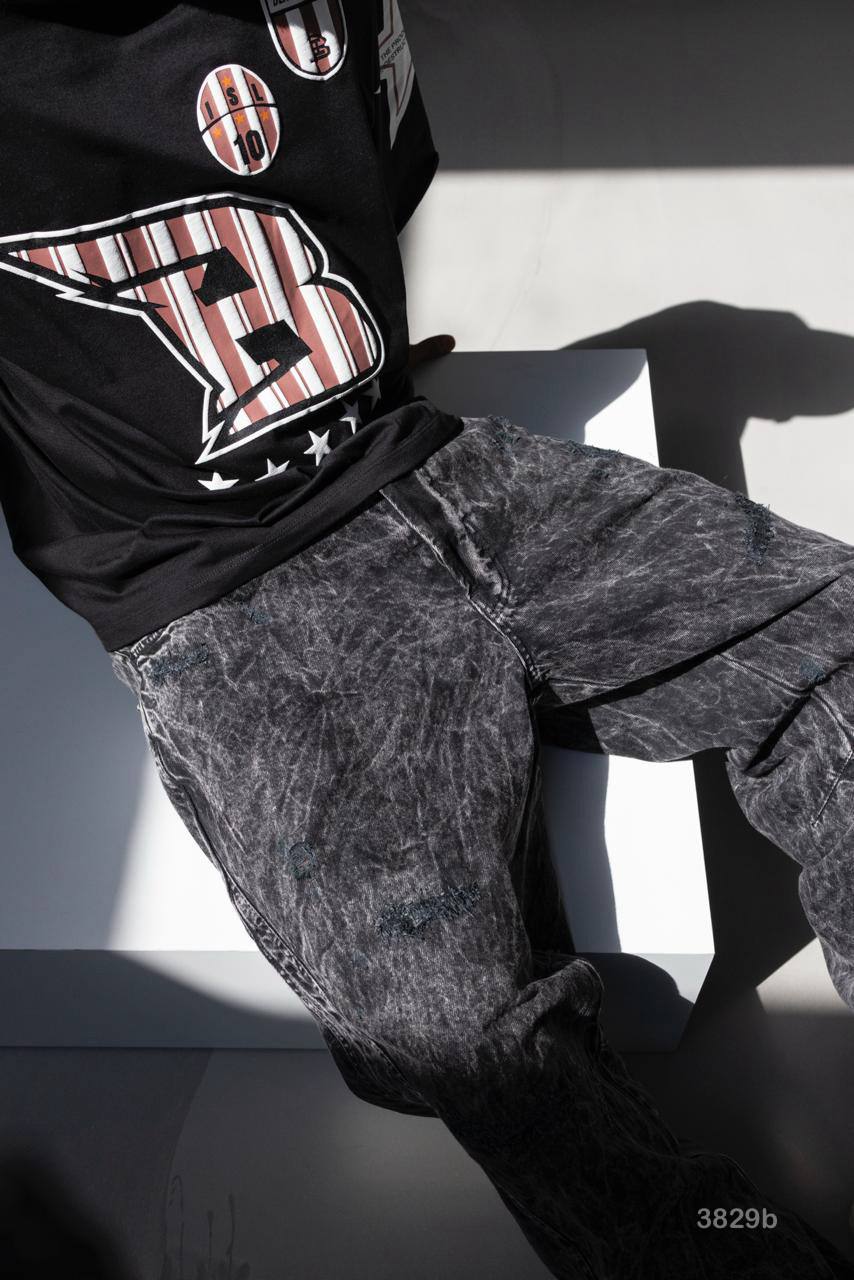 Мужские Графитовые Вареные Джинсы Багги – Рваные Широкие Джинсовые Штаны