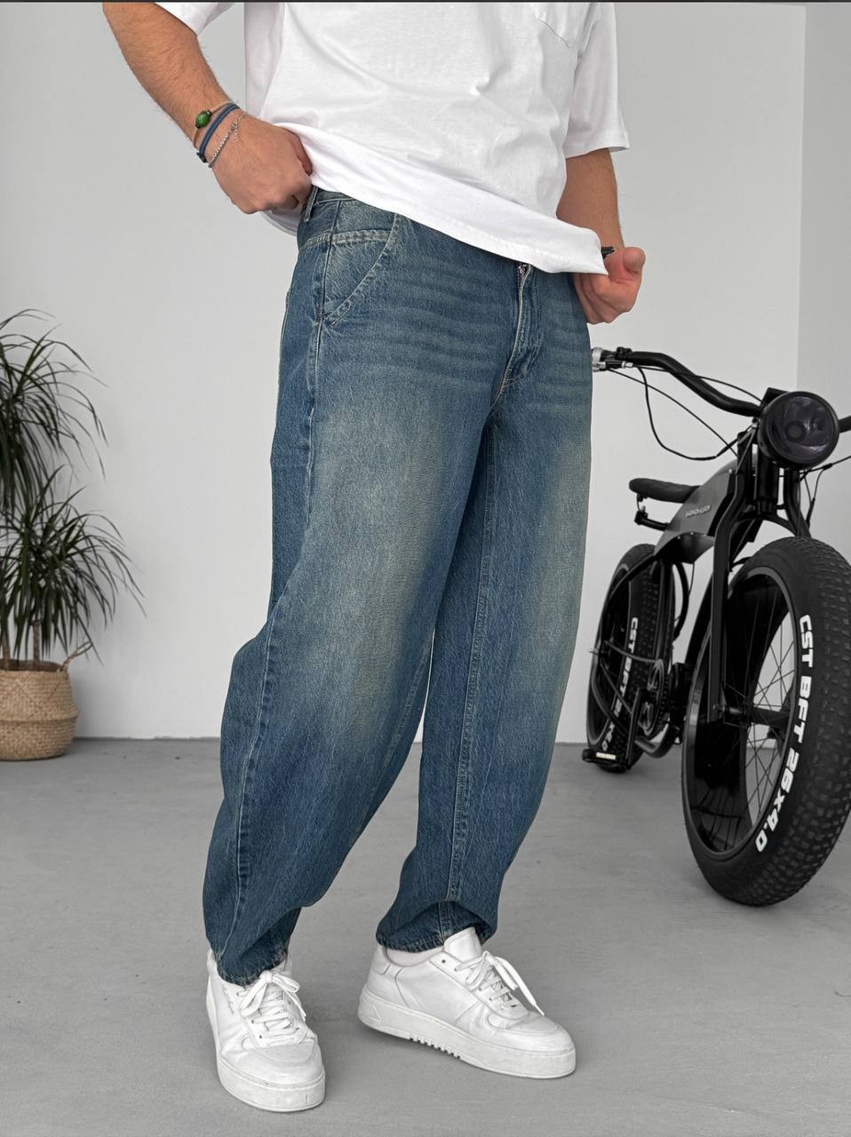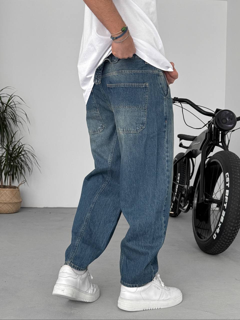 Мужские Объемные Синие Джинсы Багги – Джинсовые Штаны Оверсайз
