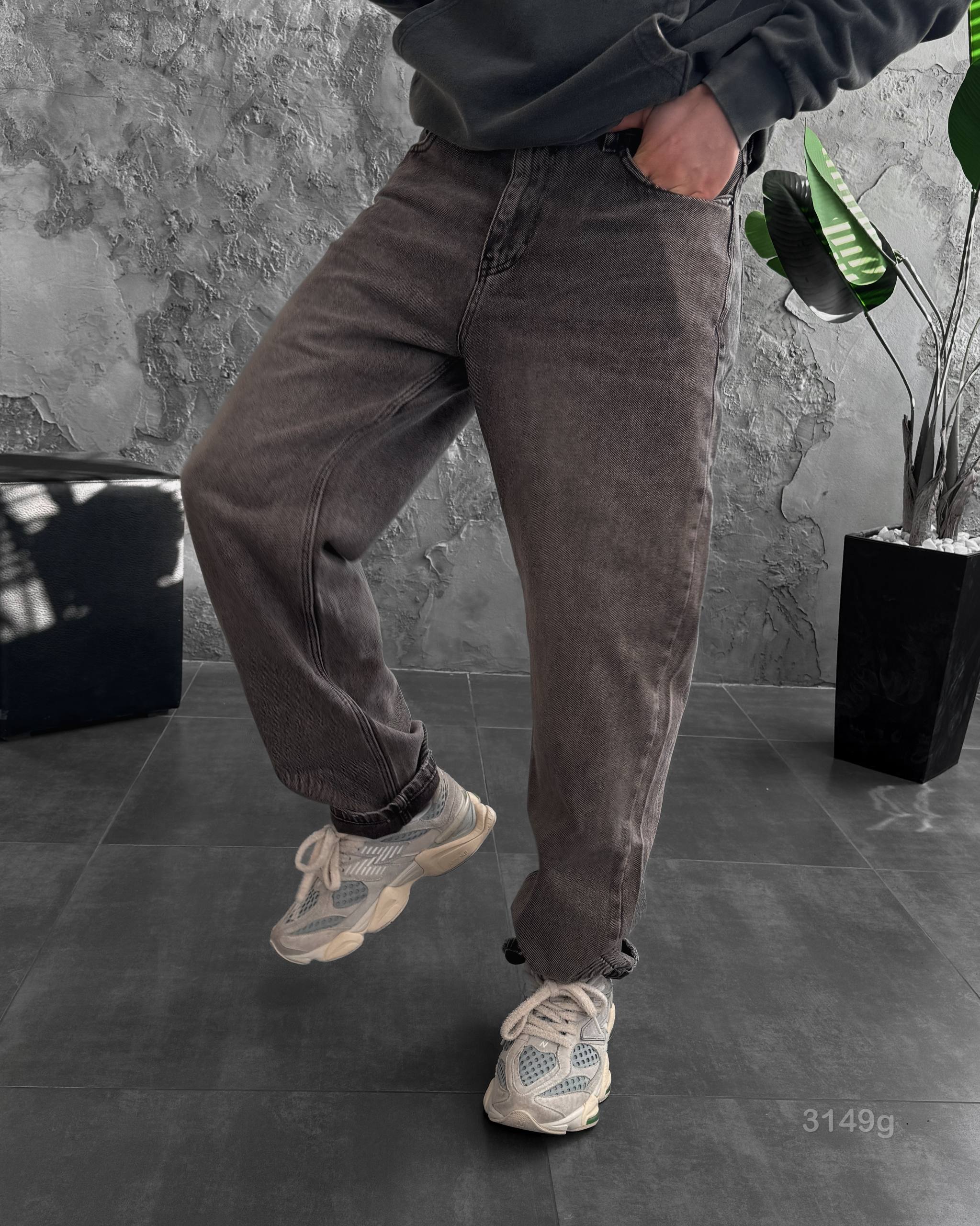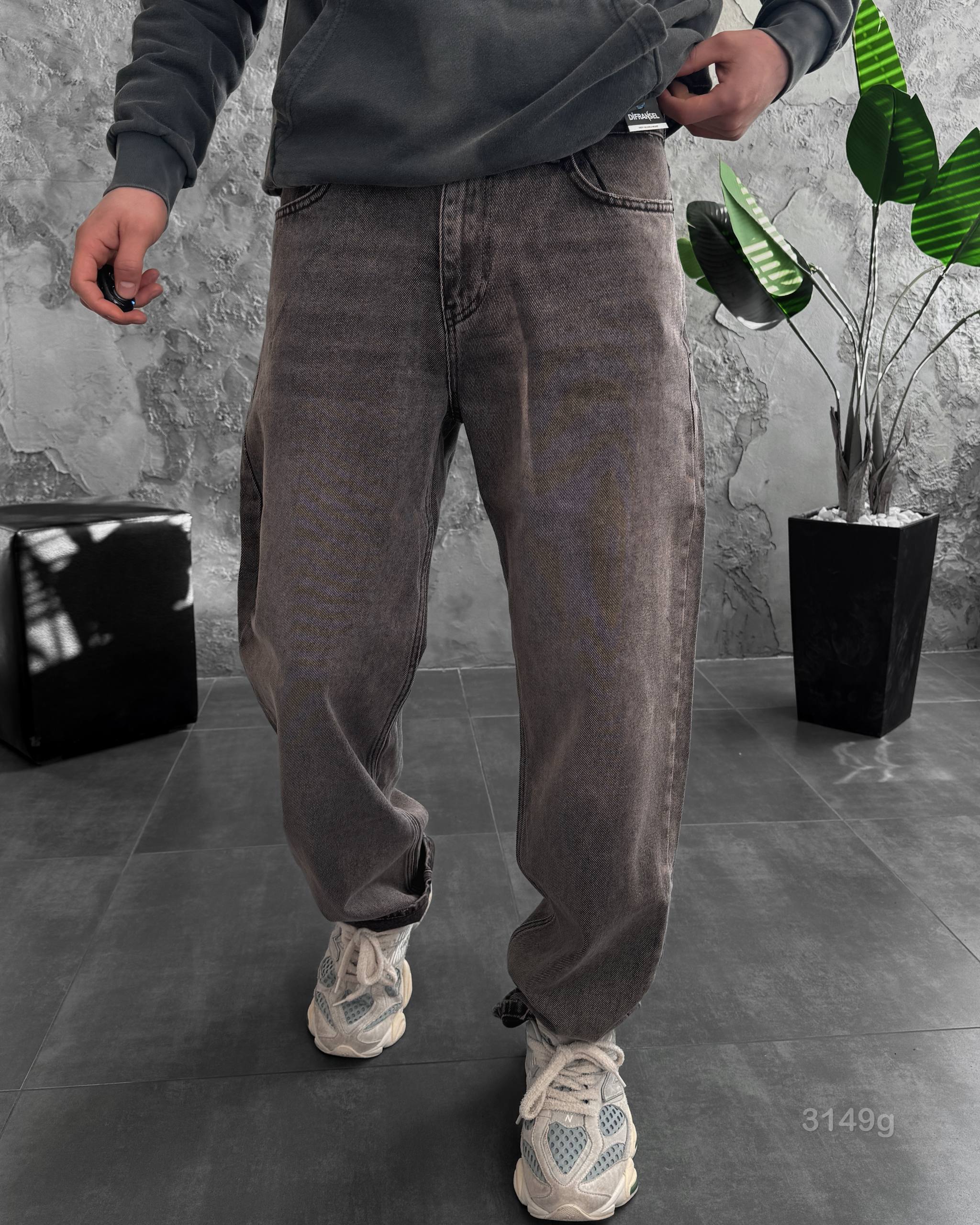 Мужские Серые Джинсы Багги – Свободные Широкие Джинсовые Штаны