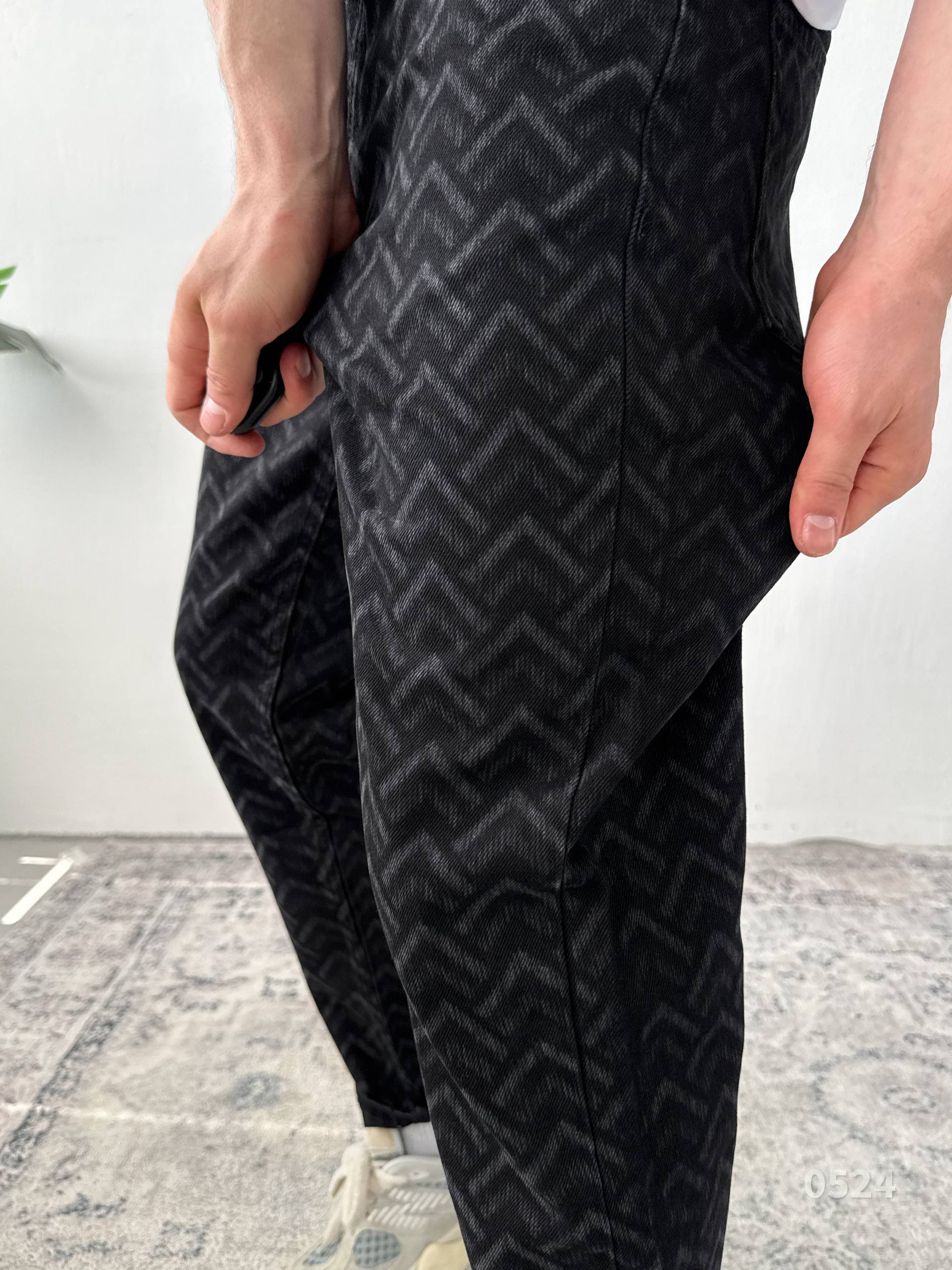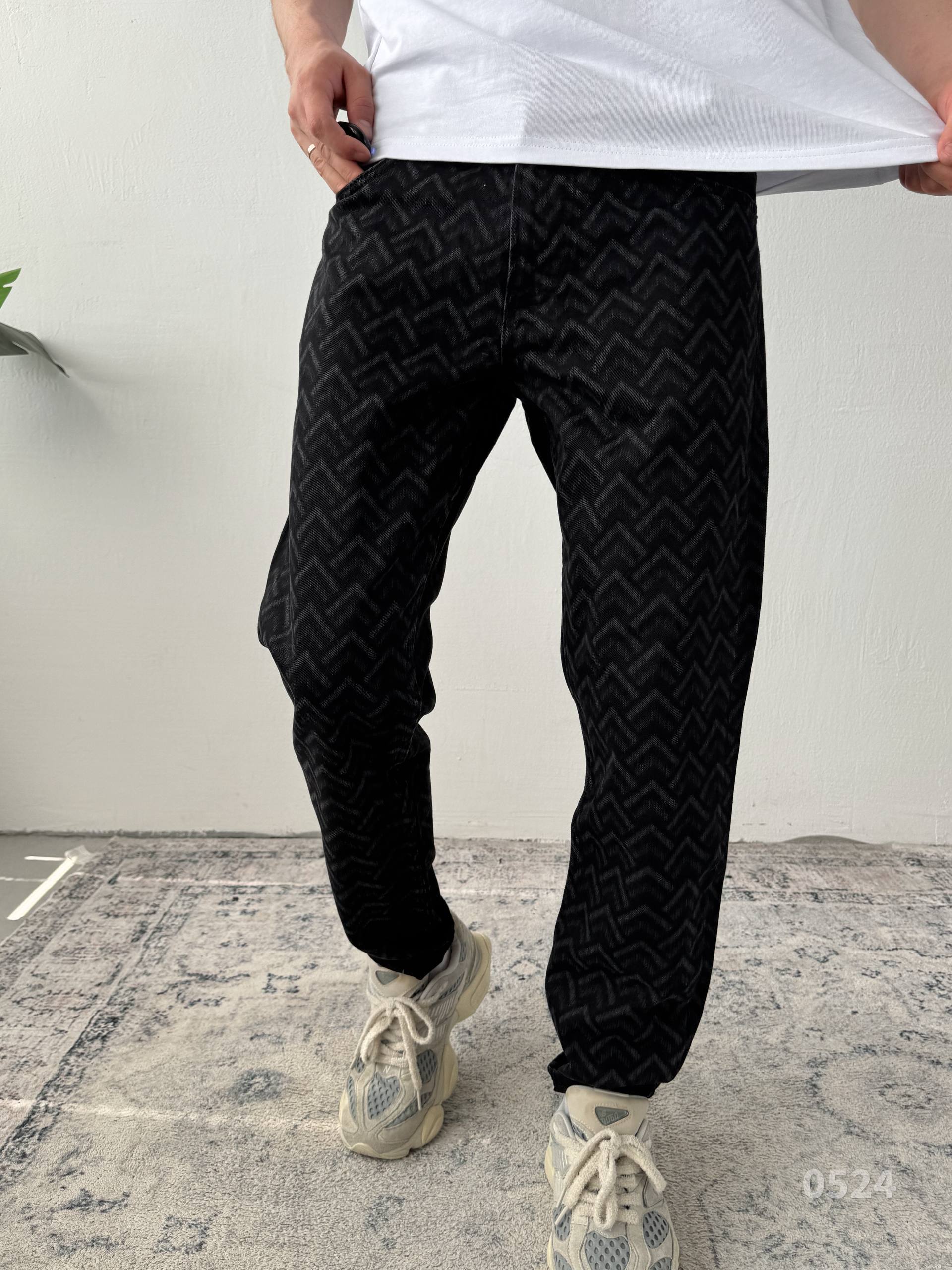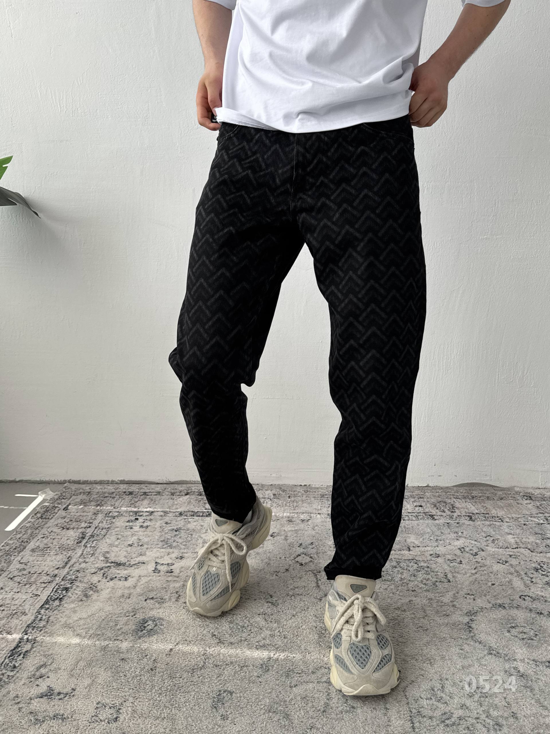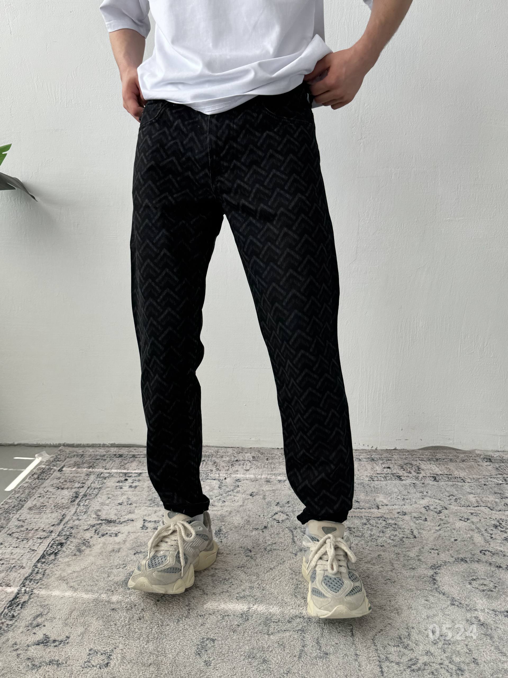Мужские Широкие Черные Джинсы с Узором – Джинсовые Штаны Багги