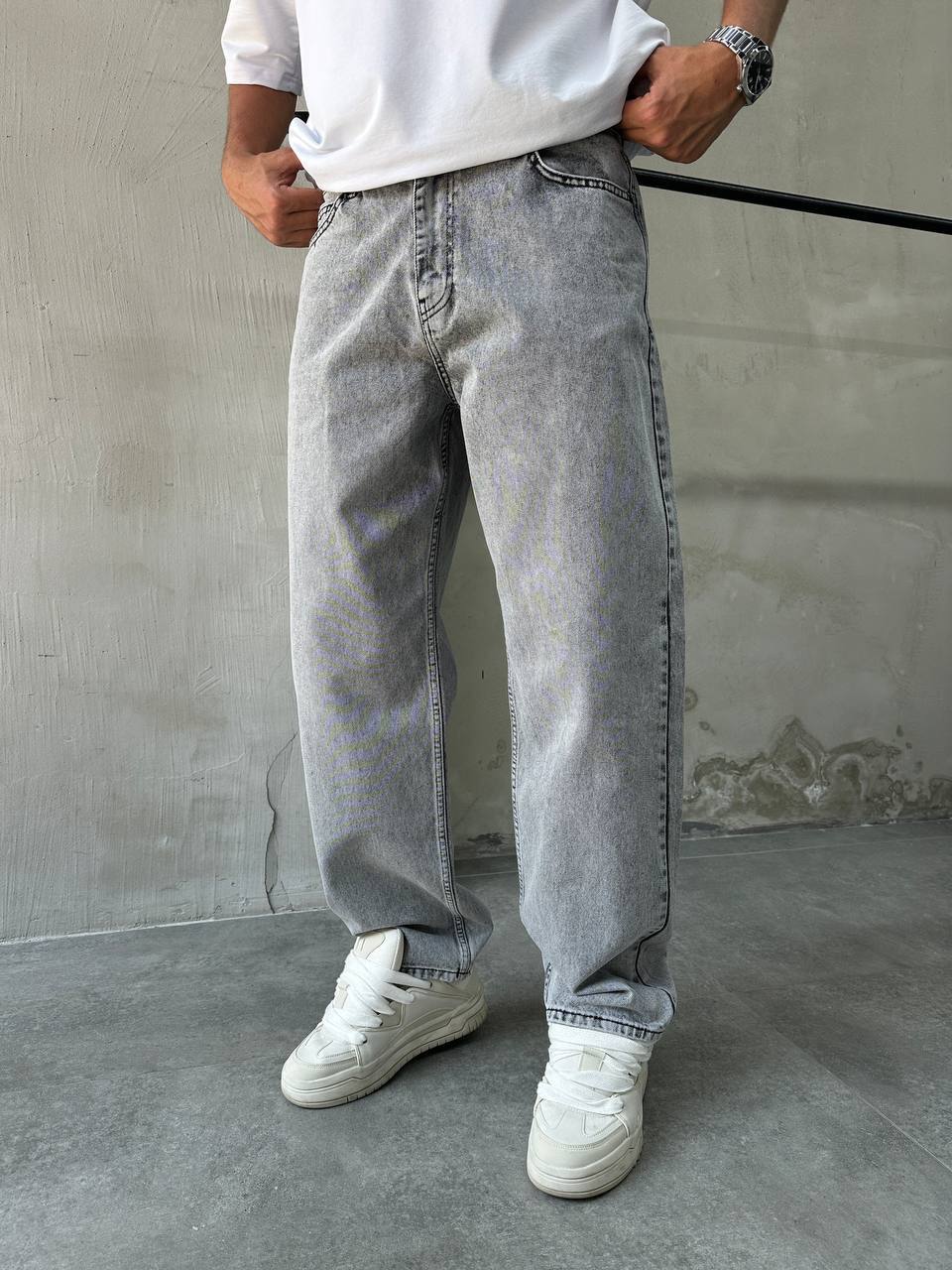 Мужские Широкие Серые Джинсы Багги – Джинсовые Штаны Оверсайз Кроя