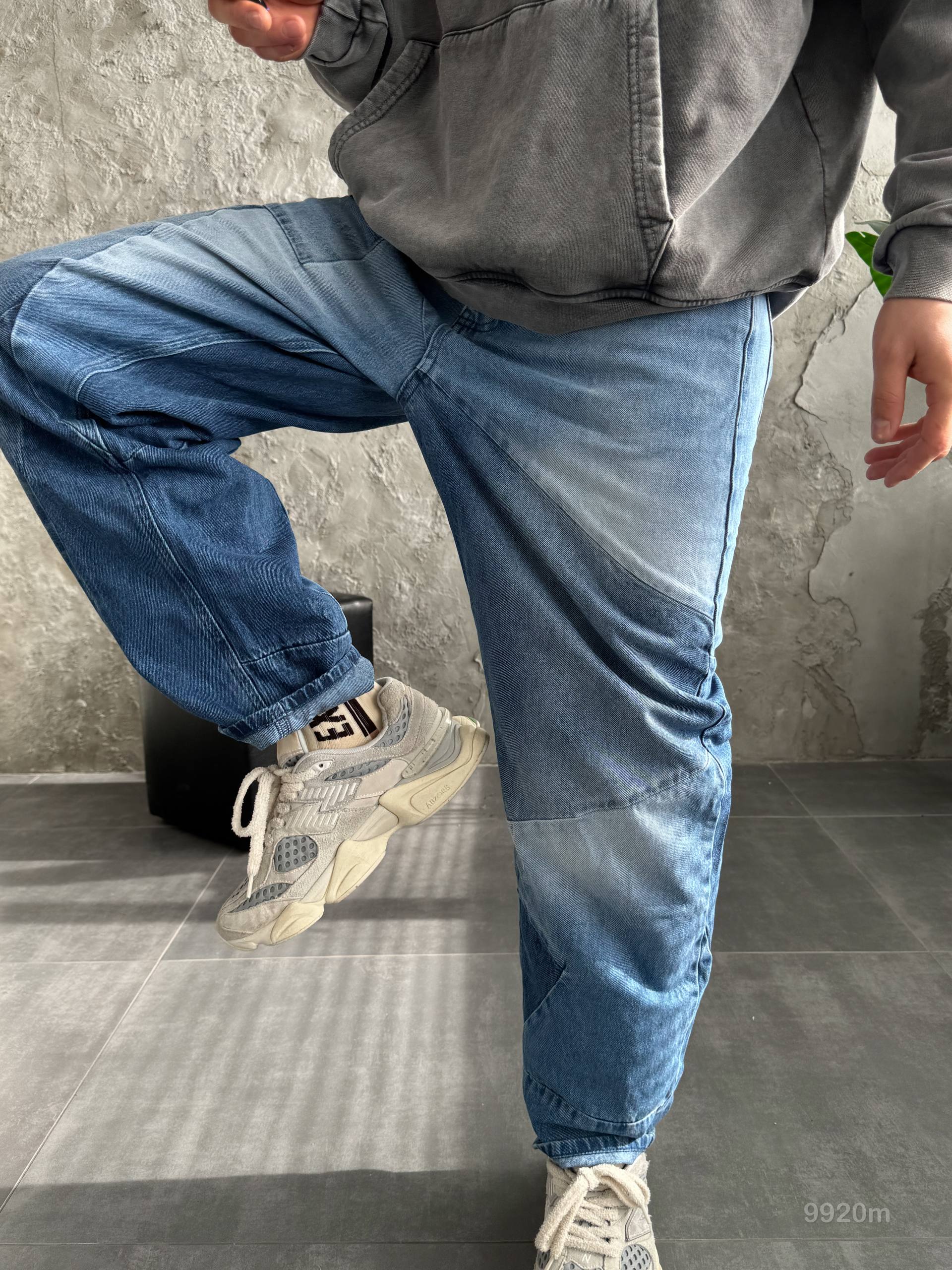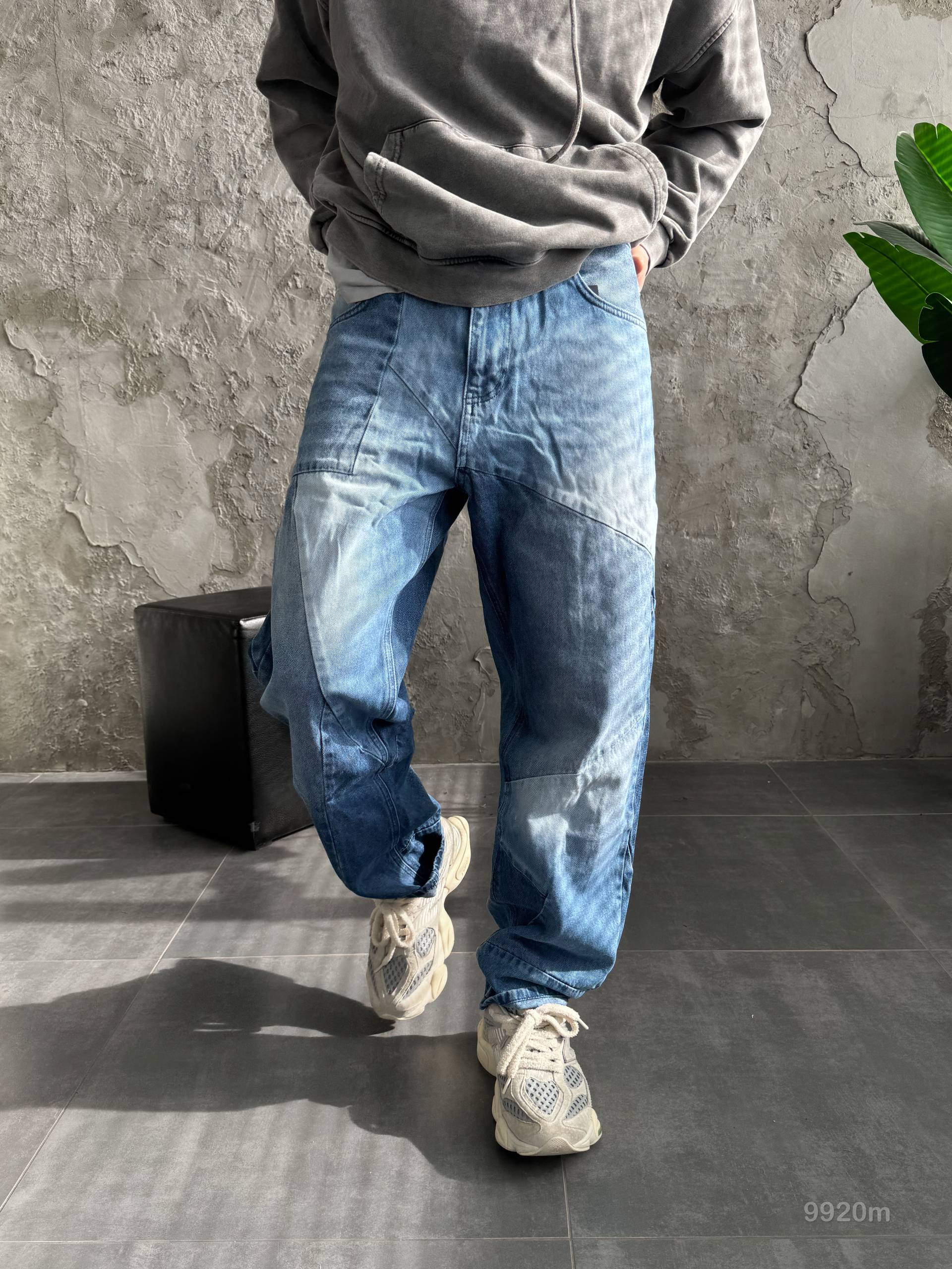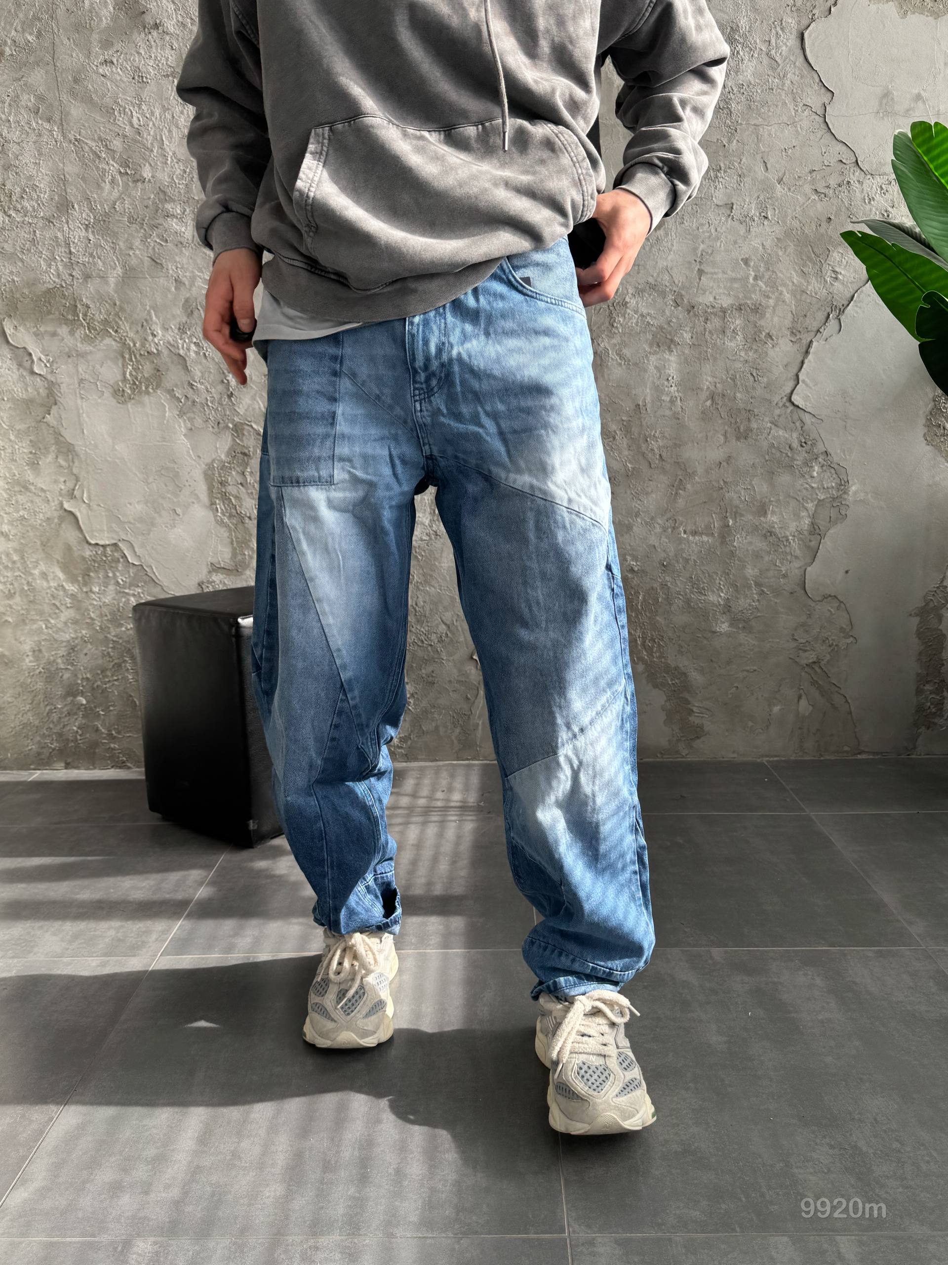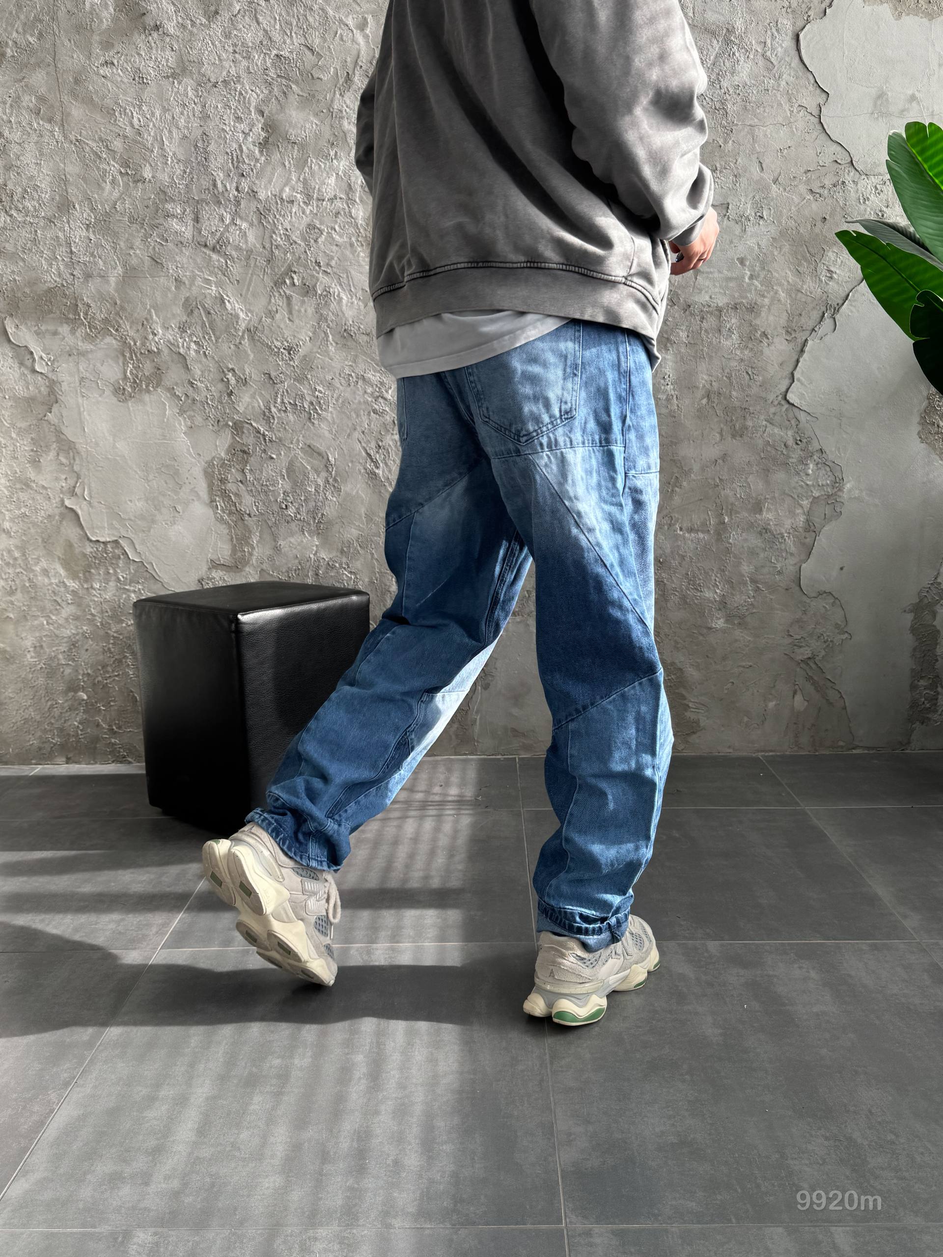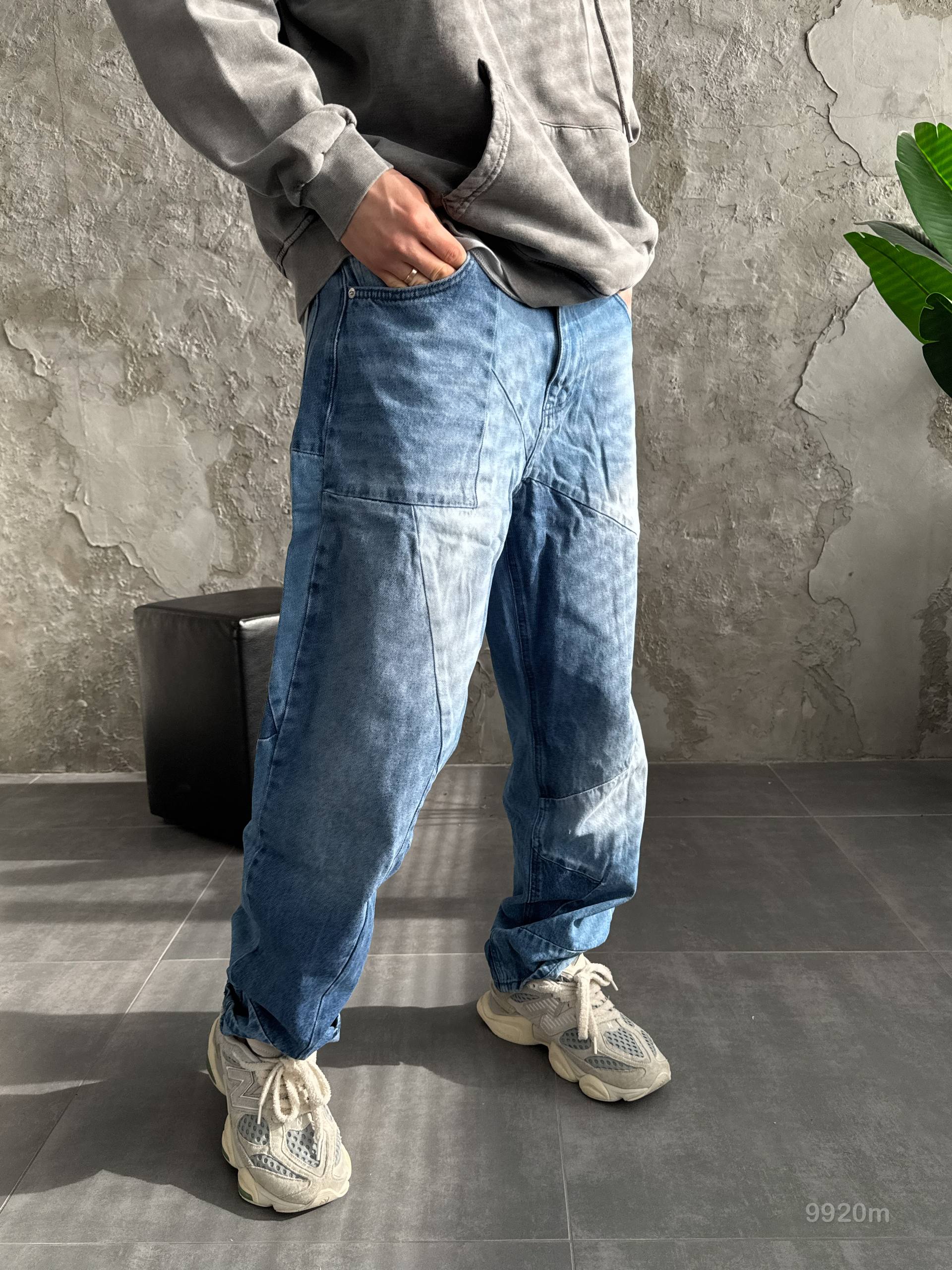Мужские Широкие Синие Джинсы Багги – Свободного Кроя с Декоративными Швами
