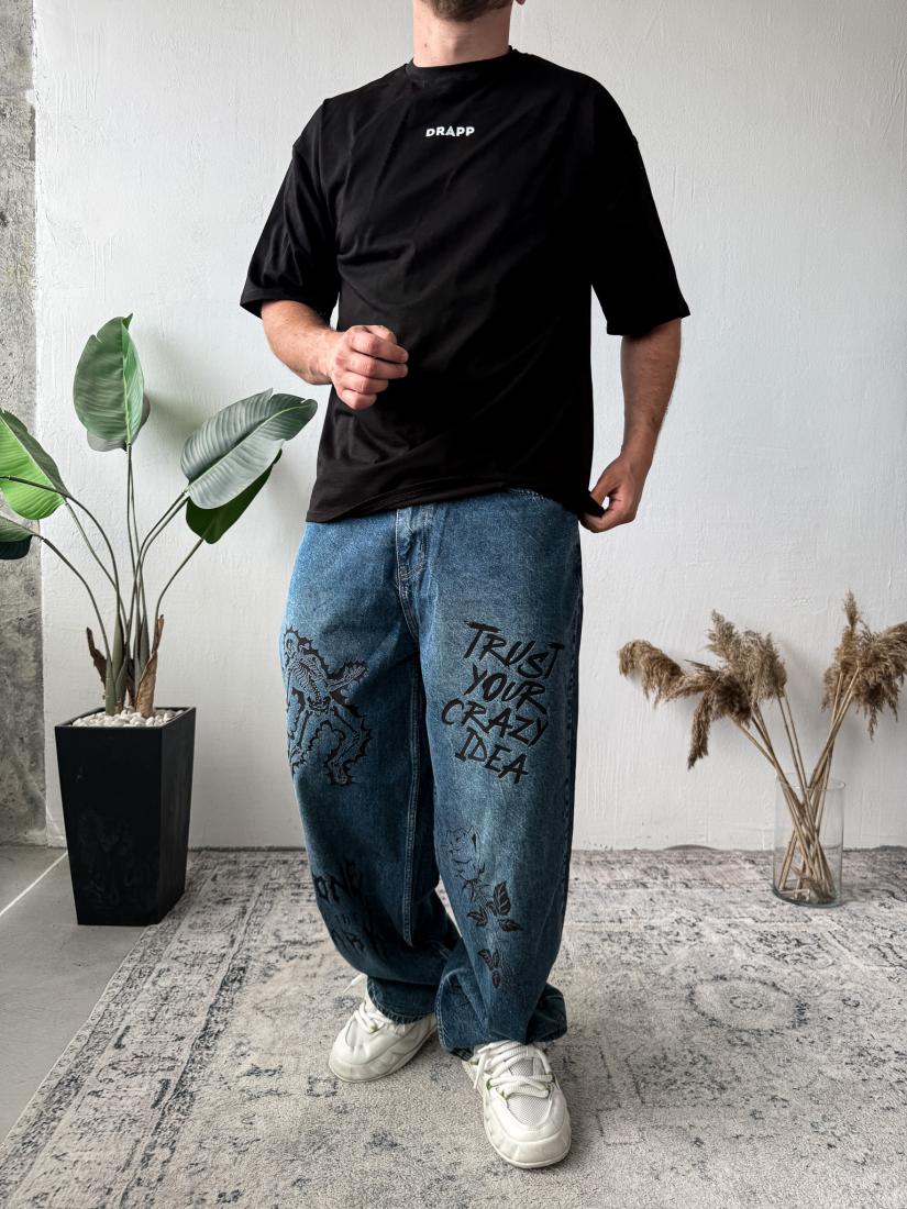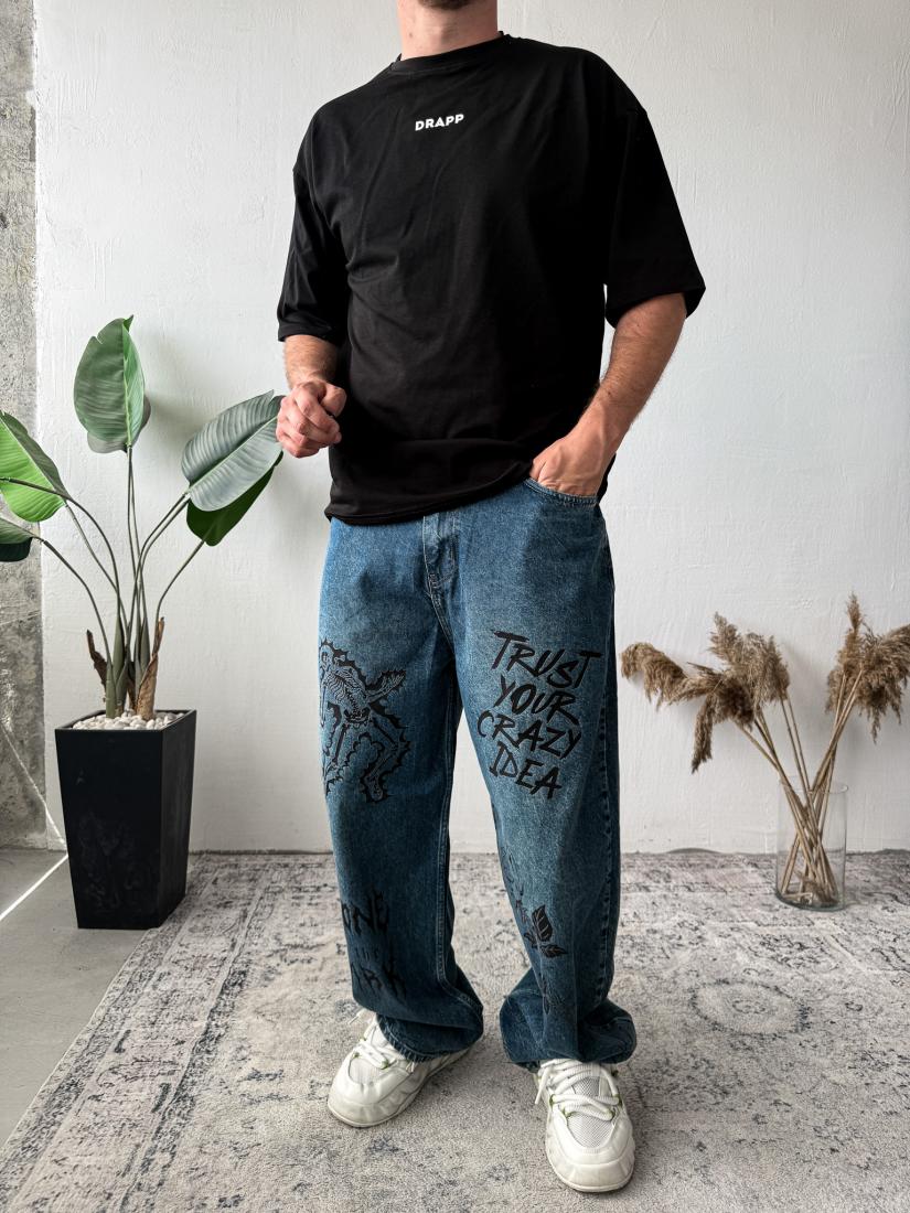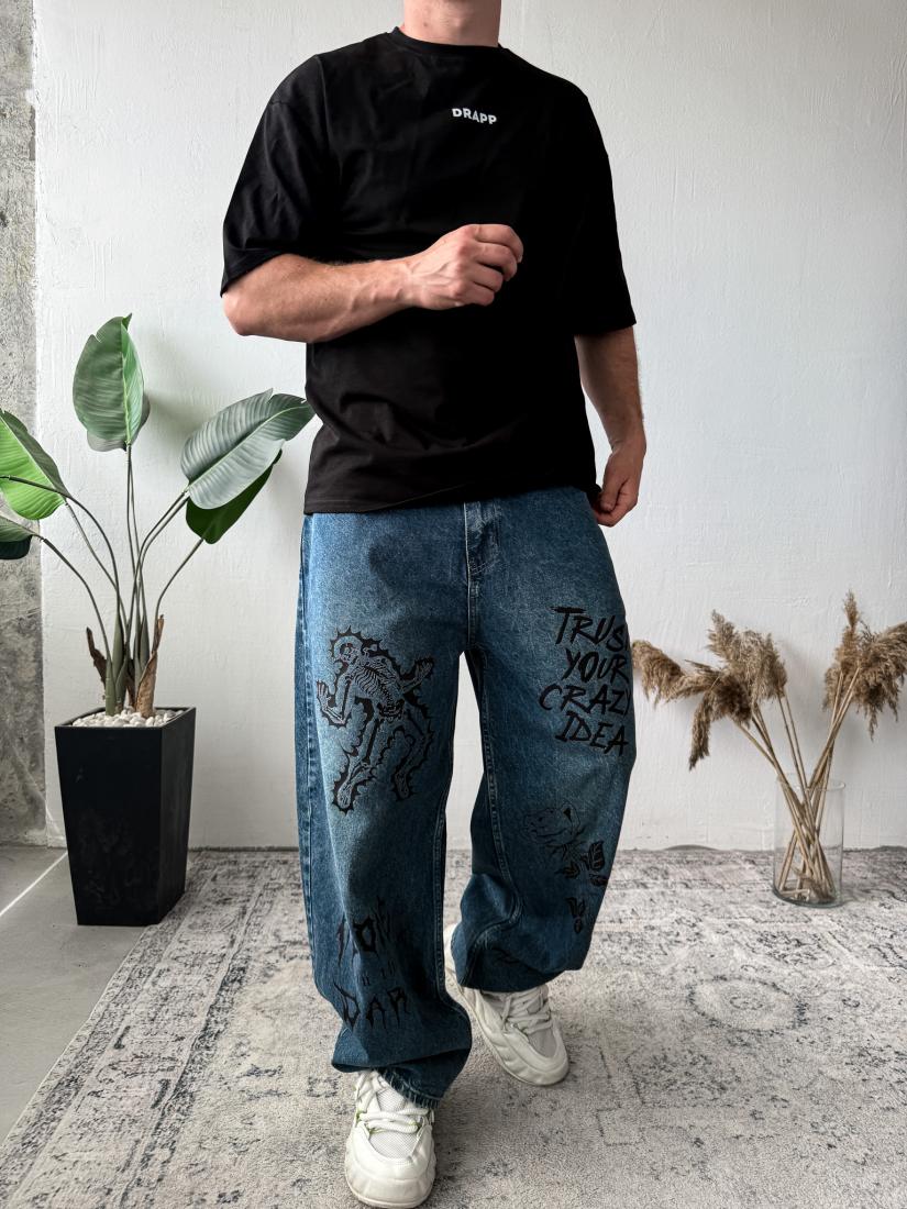 Мужские Широкие Синие Джинсы Баллоны Оверсайз с Надписями