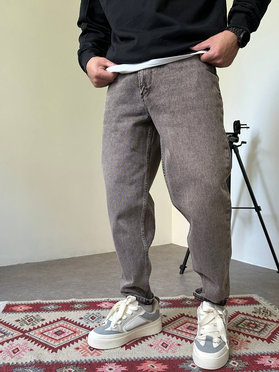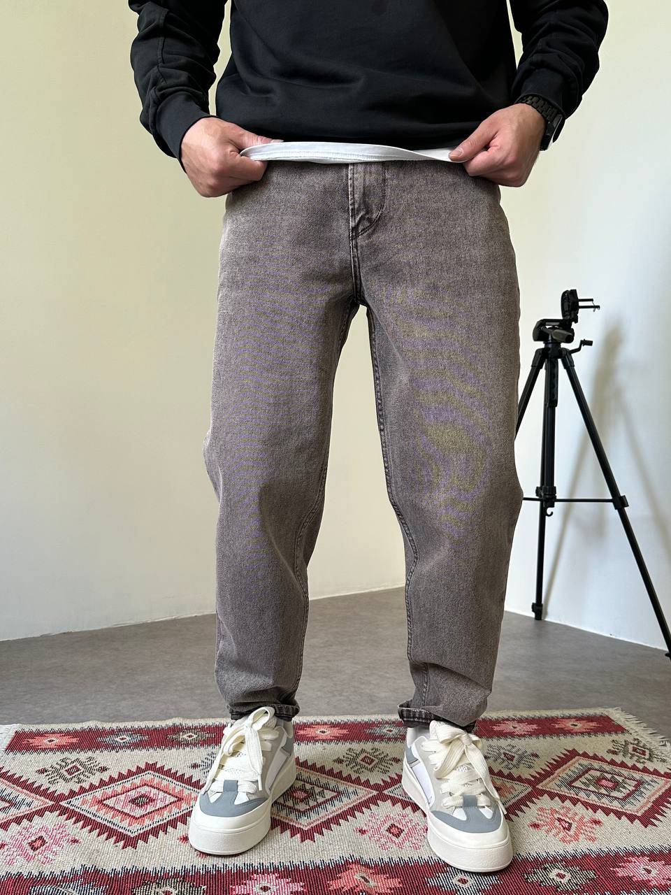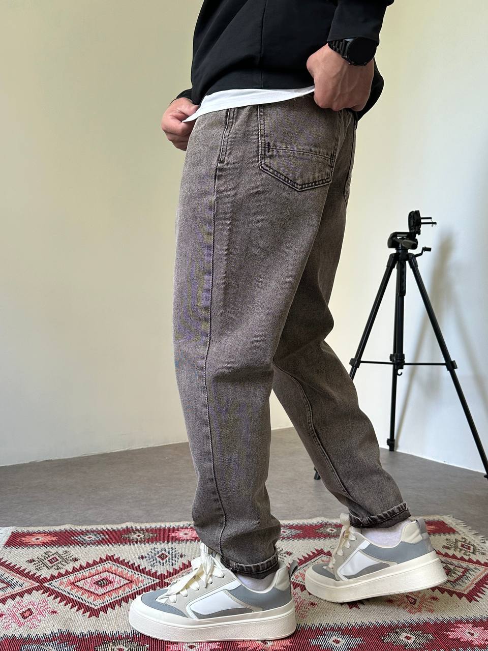 Мужские Широкие Темно-Серые Джинсы Мом с Плотного Денима