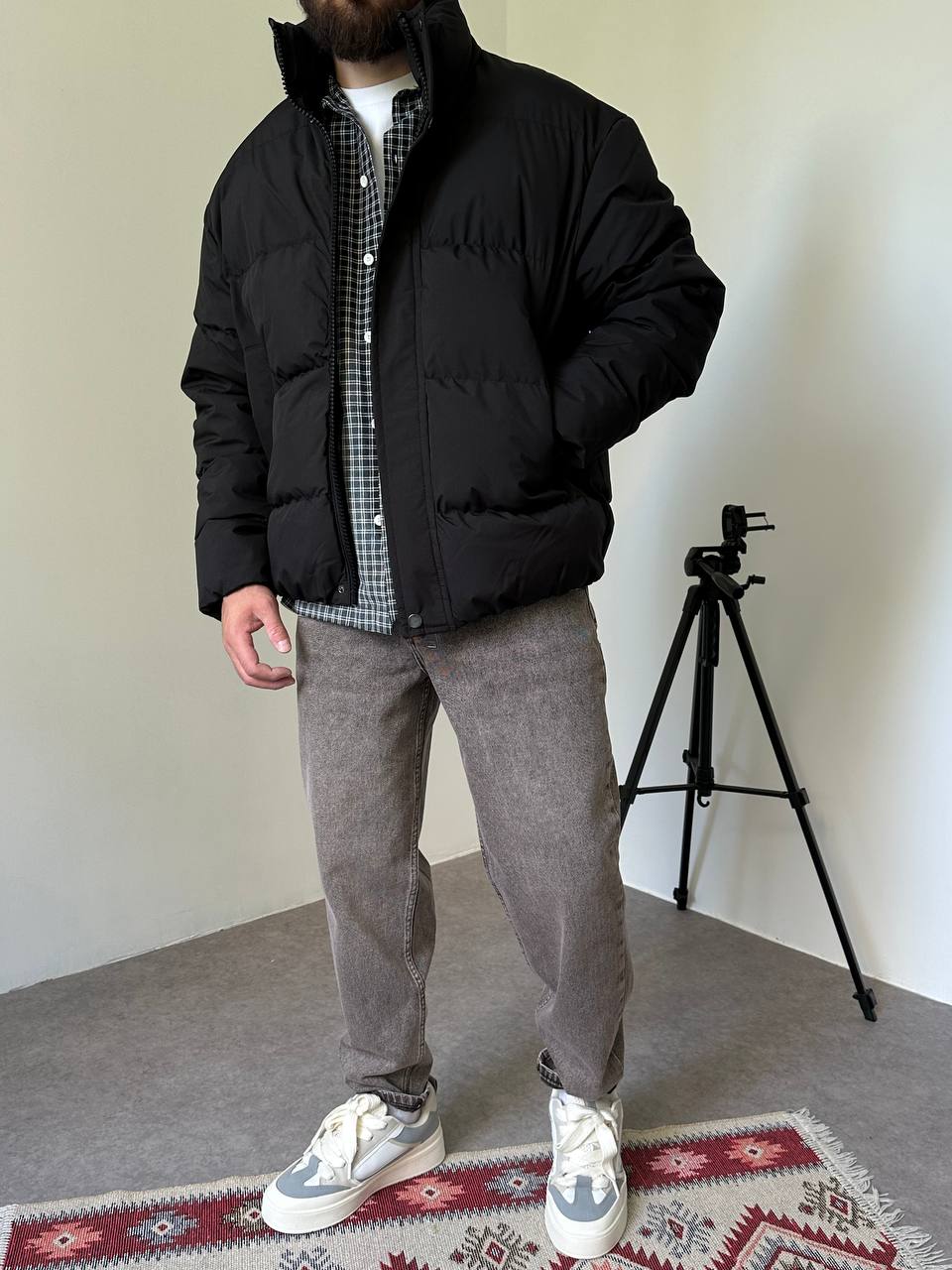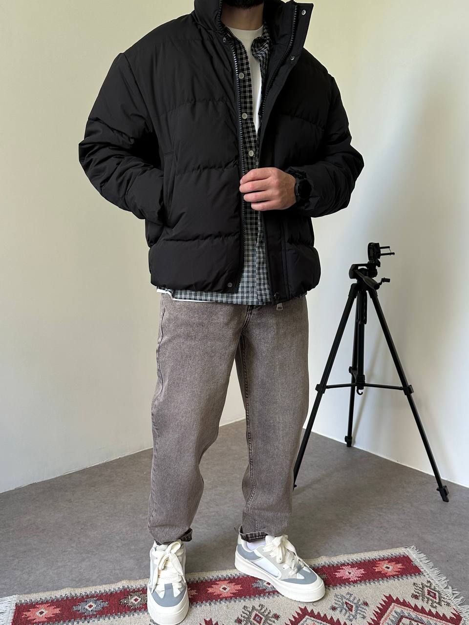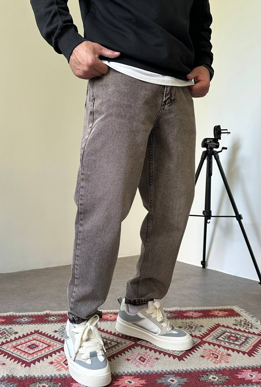 Мужские Широкие Темно-Серые Джинсы Мом с Плотного Денима