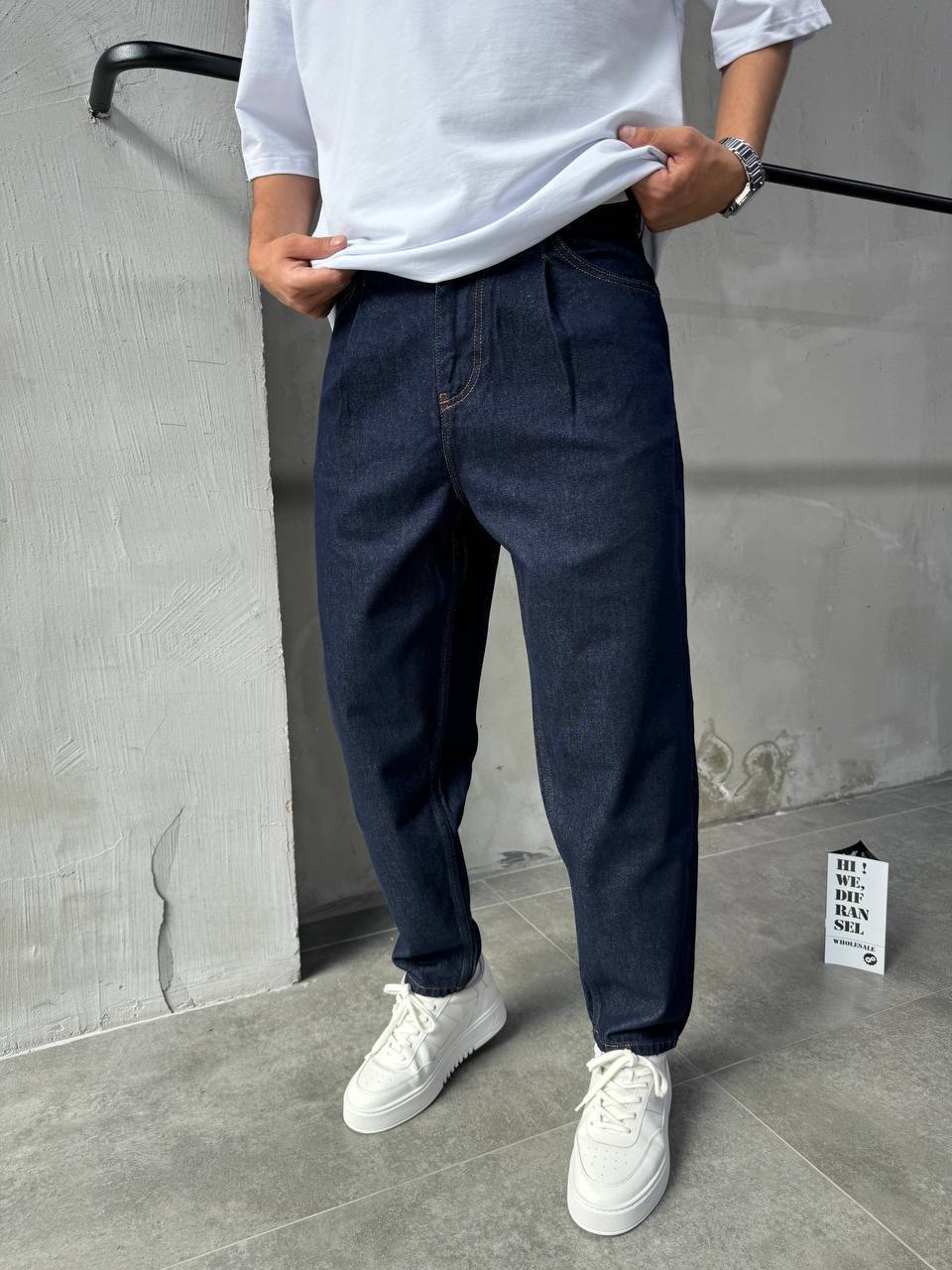 Мужские Широкие Темно-Синие Джинсы Баллоны со Складками