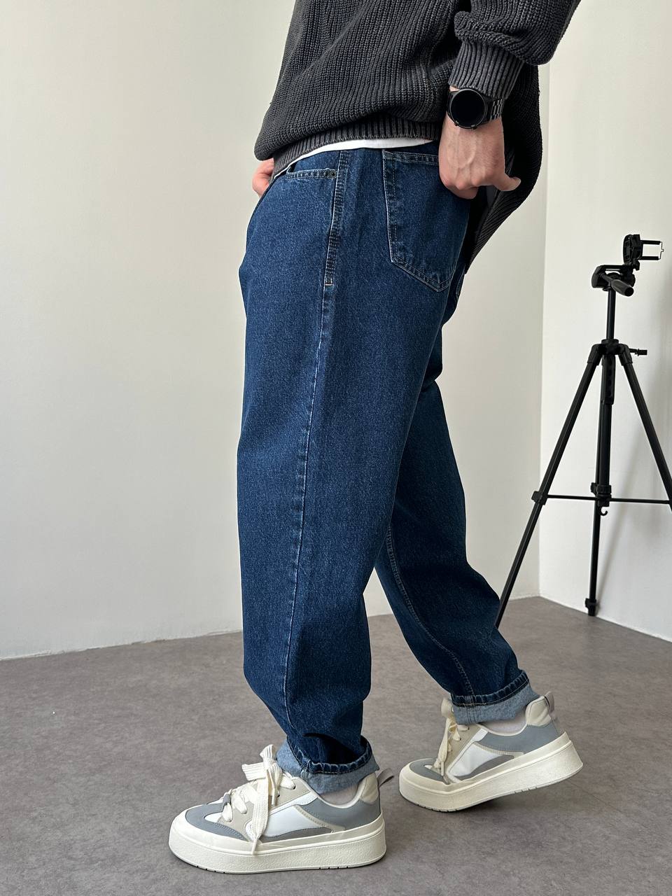 Мужские Широкие Темно-Синие Джинсы Balloon – Плотные Джинсовые Штаны Баллоны
