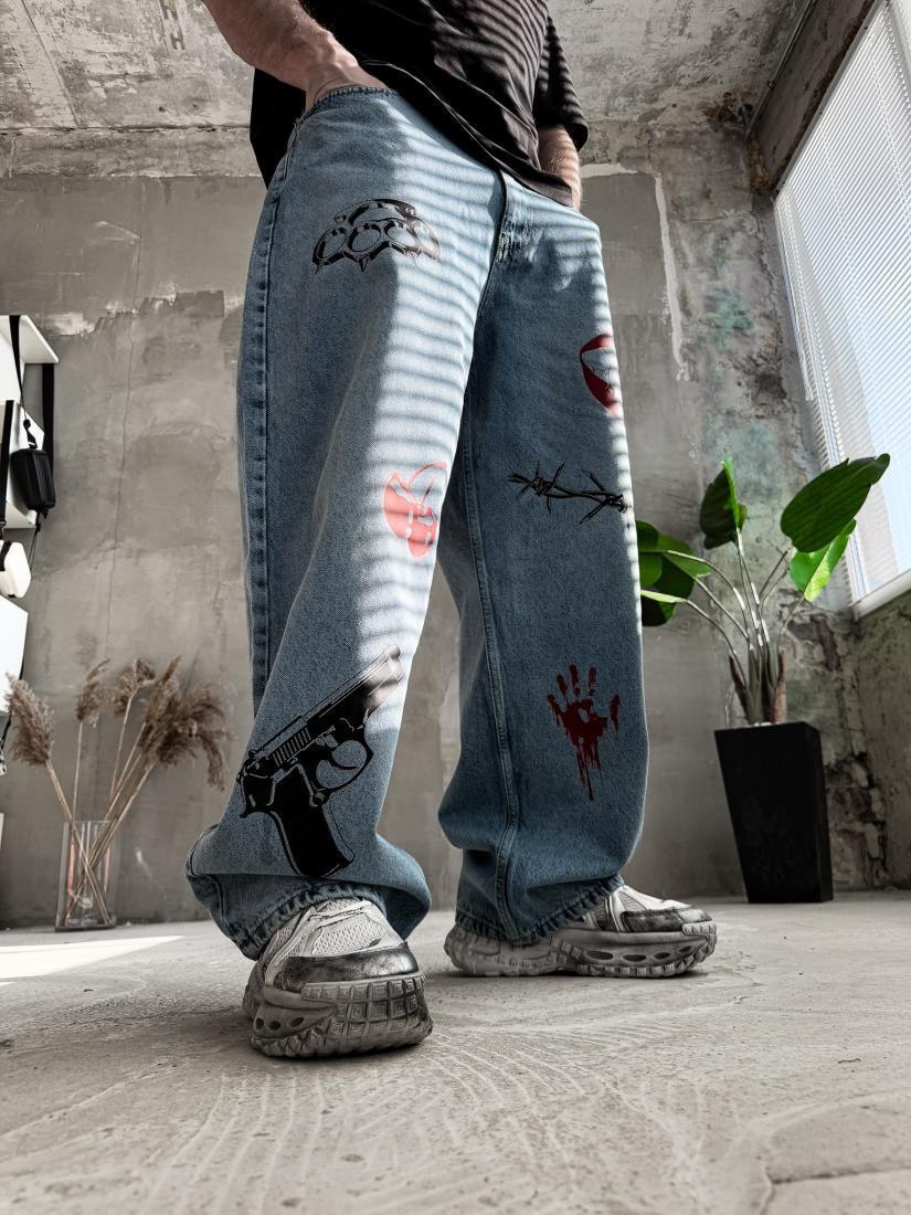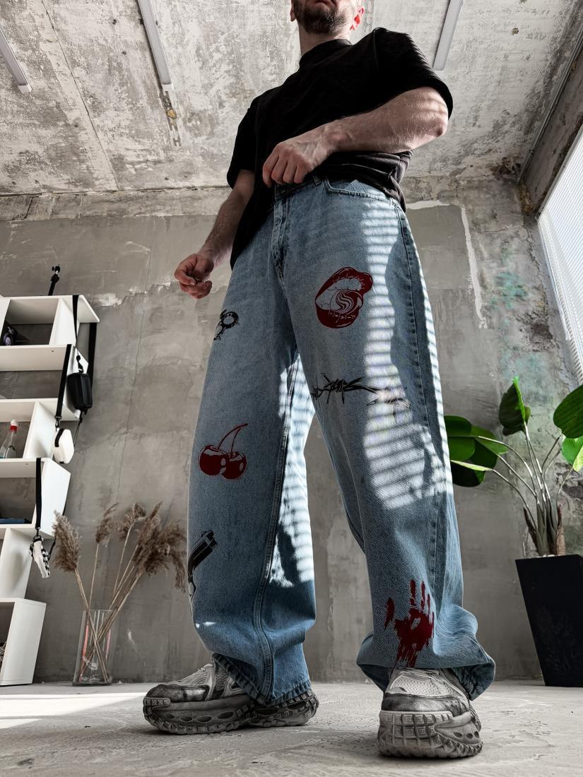Мужские Синие Джинсы Баллоны – Широкие Оверсайз с Принтами