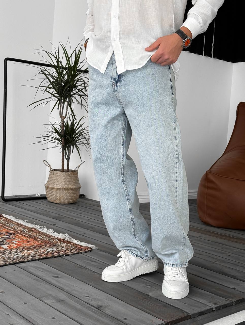 Мужские Светло-Голубые Джинсы Багги – Широкие Оверсайз